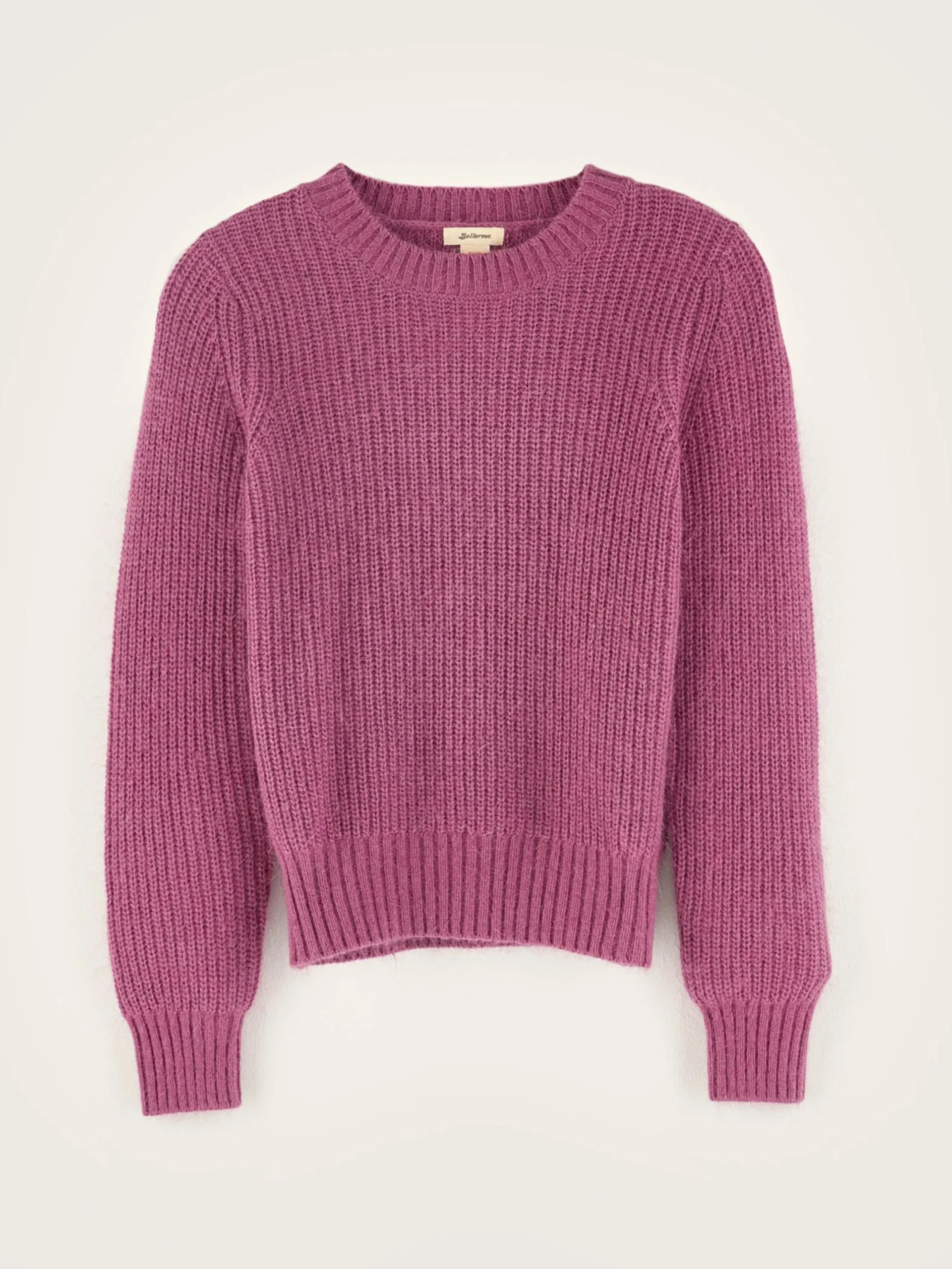 Rozerood klassieke trui met ronde hals.