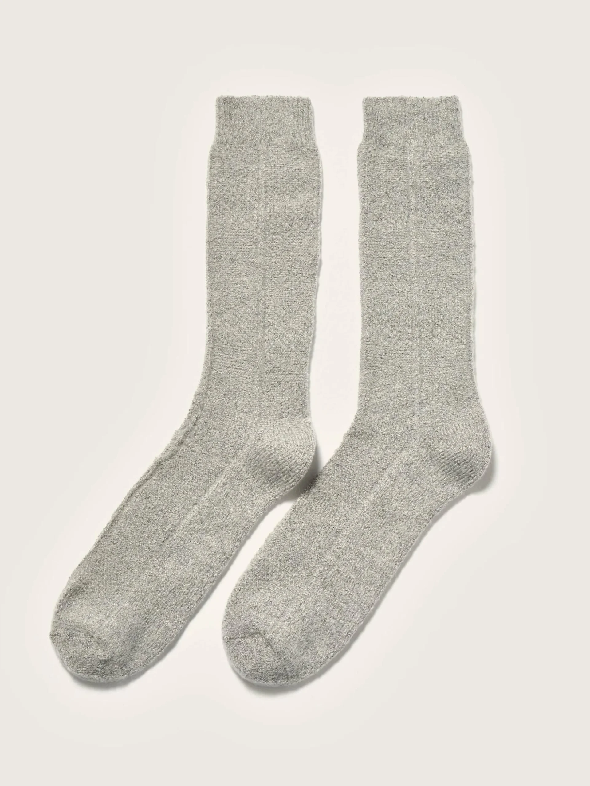 Klassieke, heidegrijze sokken met een ruitachtig patroon.