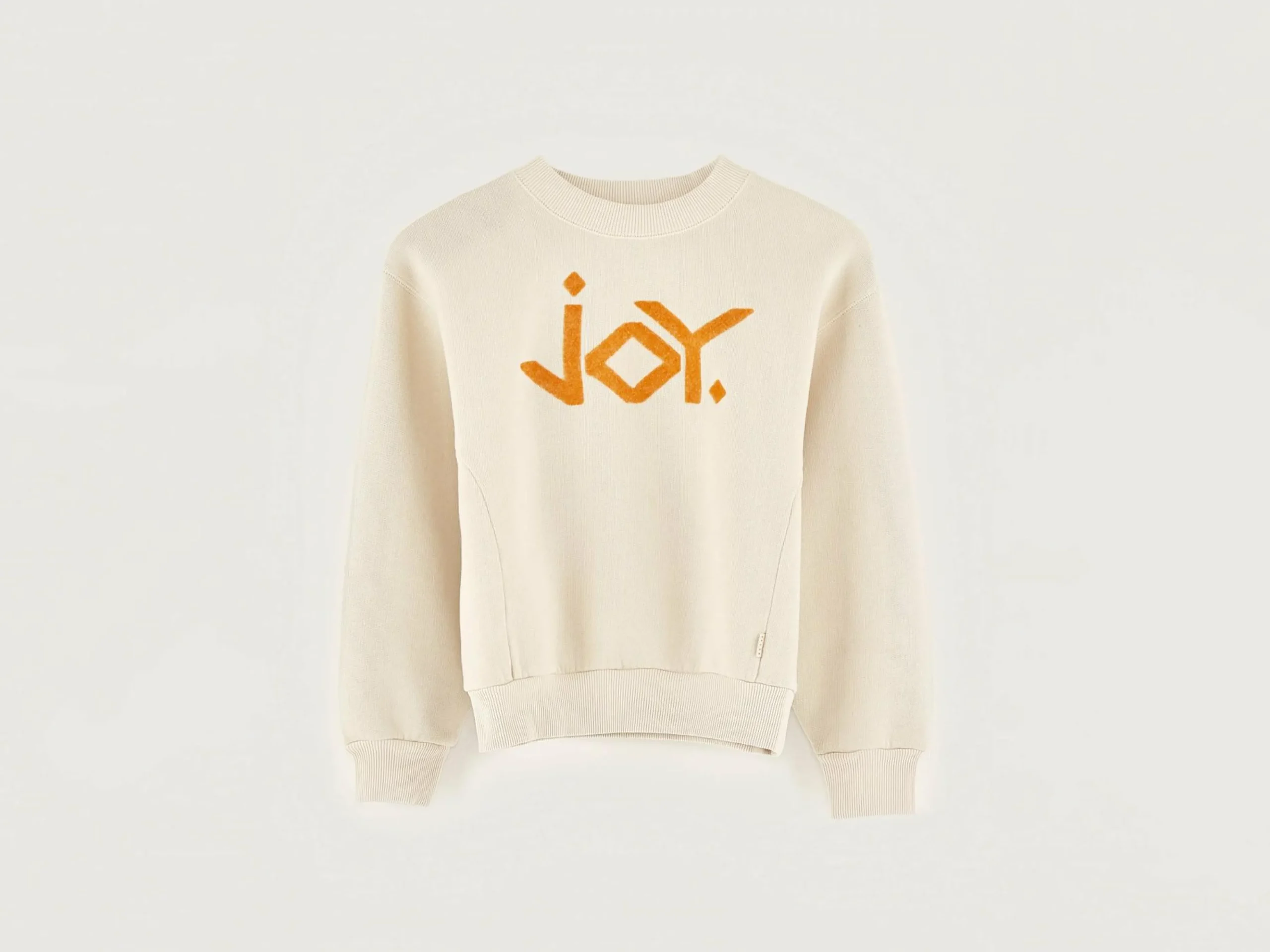 - Vilten “JOY”-bedrukking vooraan