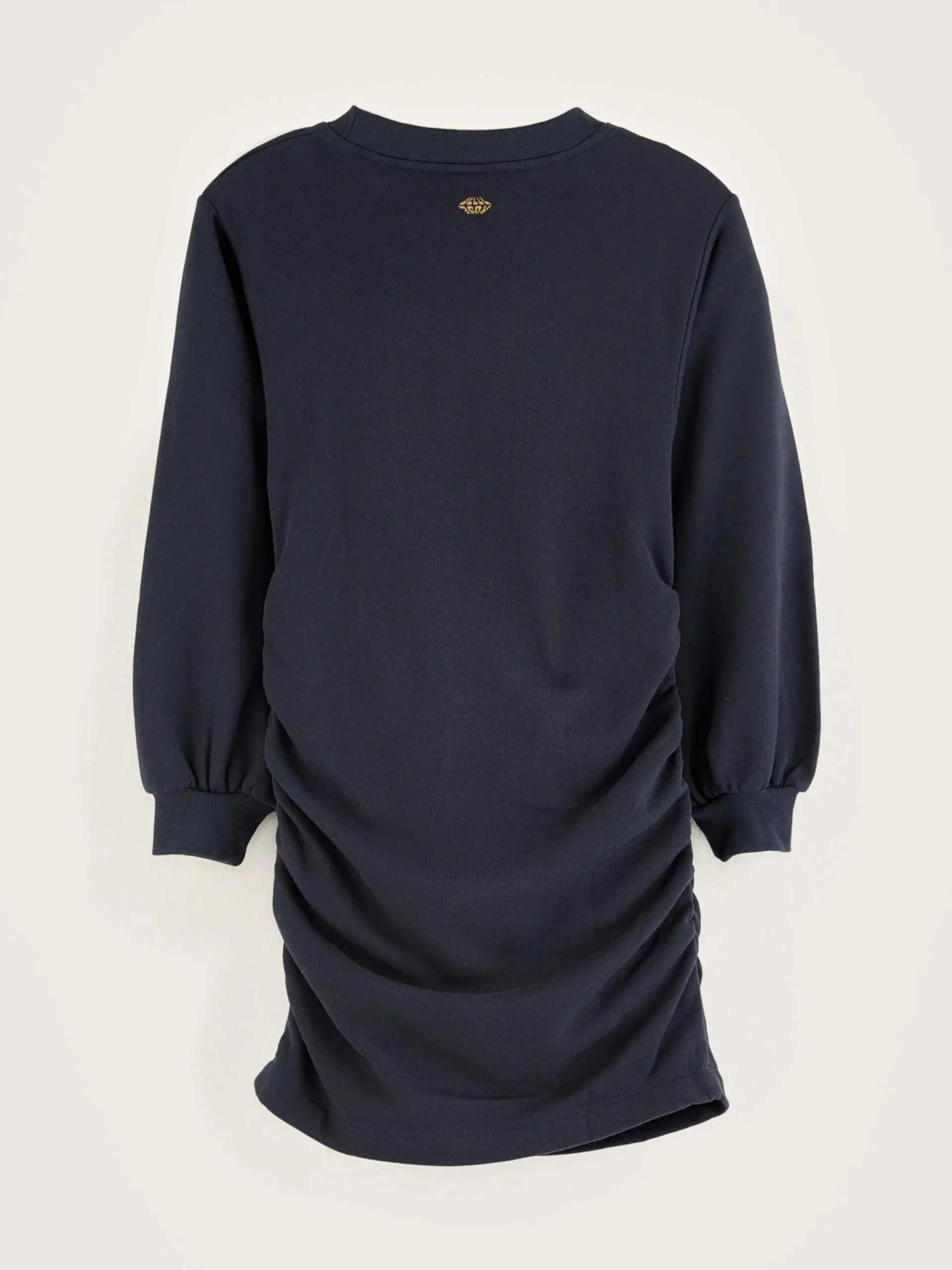 Mini-sweatshirt jurk van donkerblauwe fleecestof.