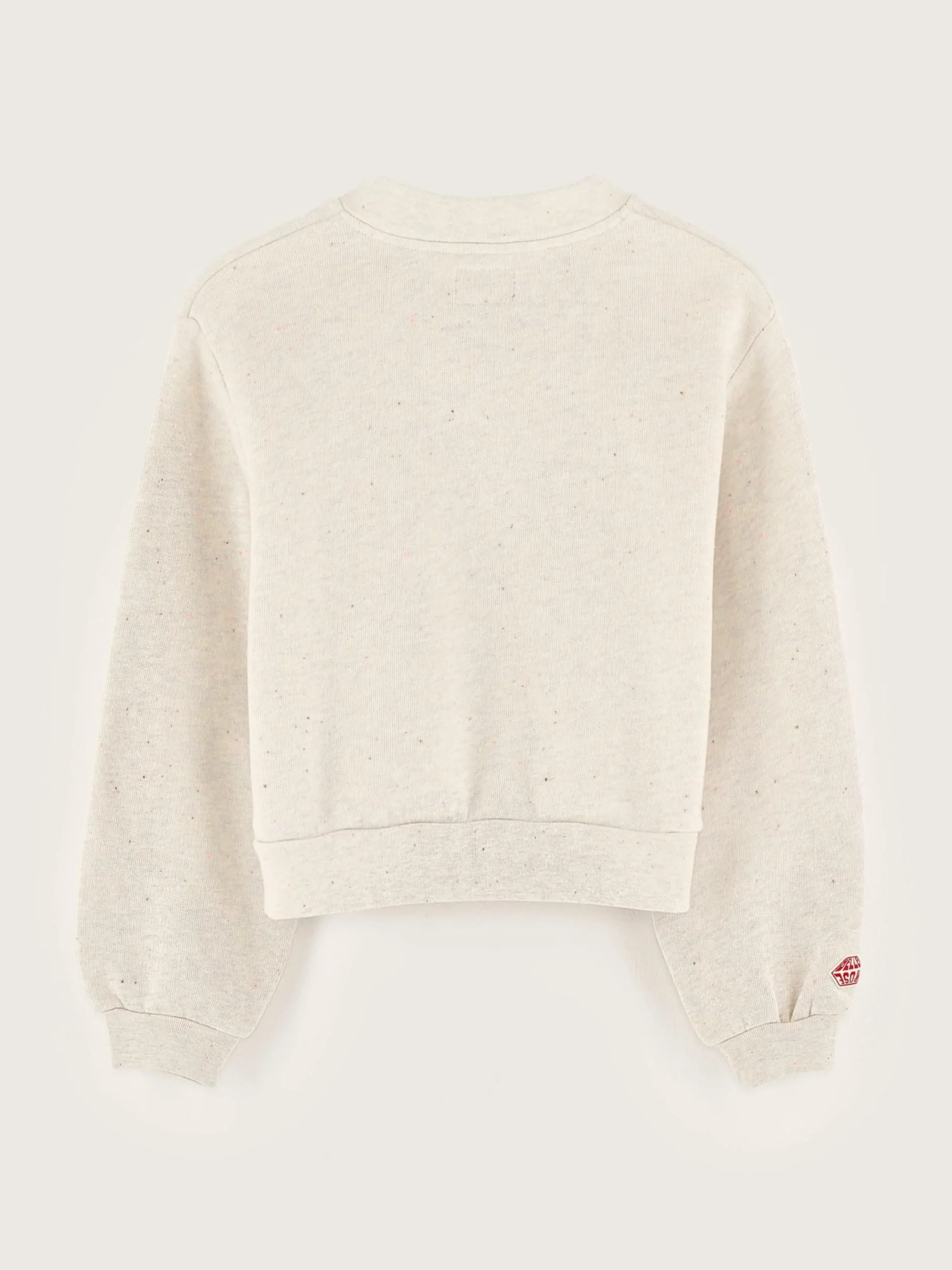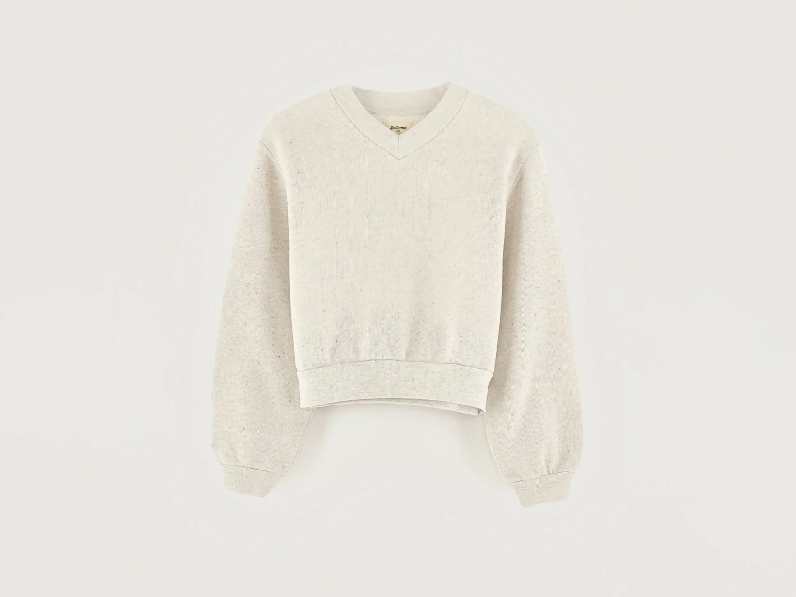 Heidegrijs, comfortabel sweatshirt met V-hals, van lichte fleecestof en met veelkleurige spikkels.