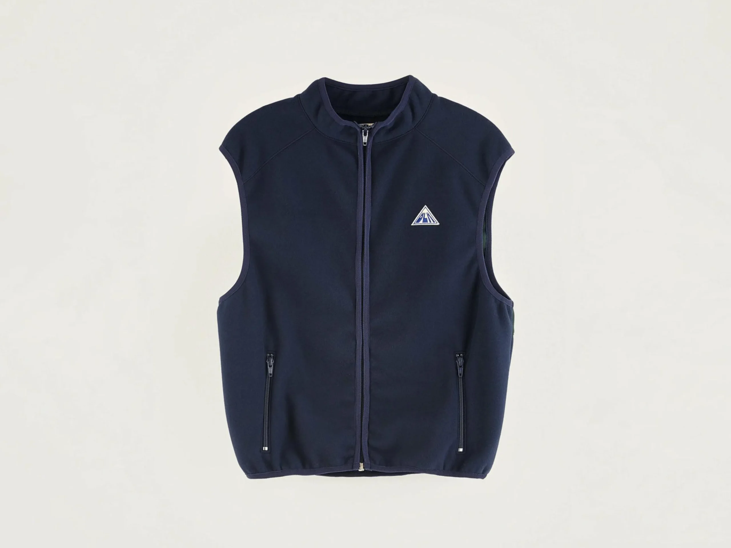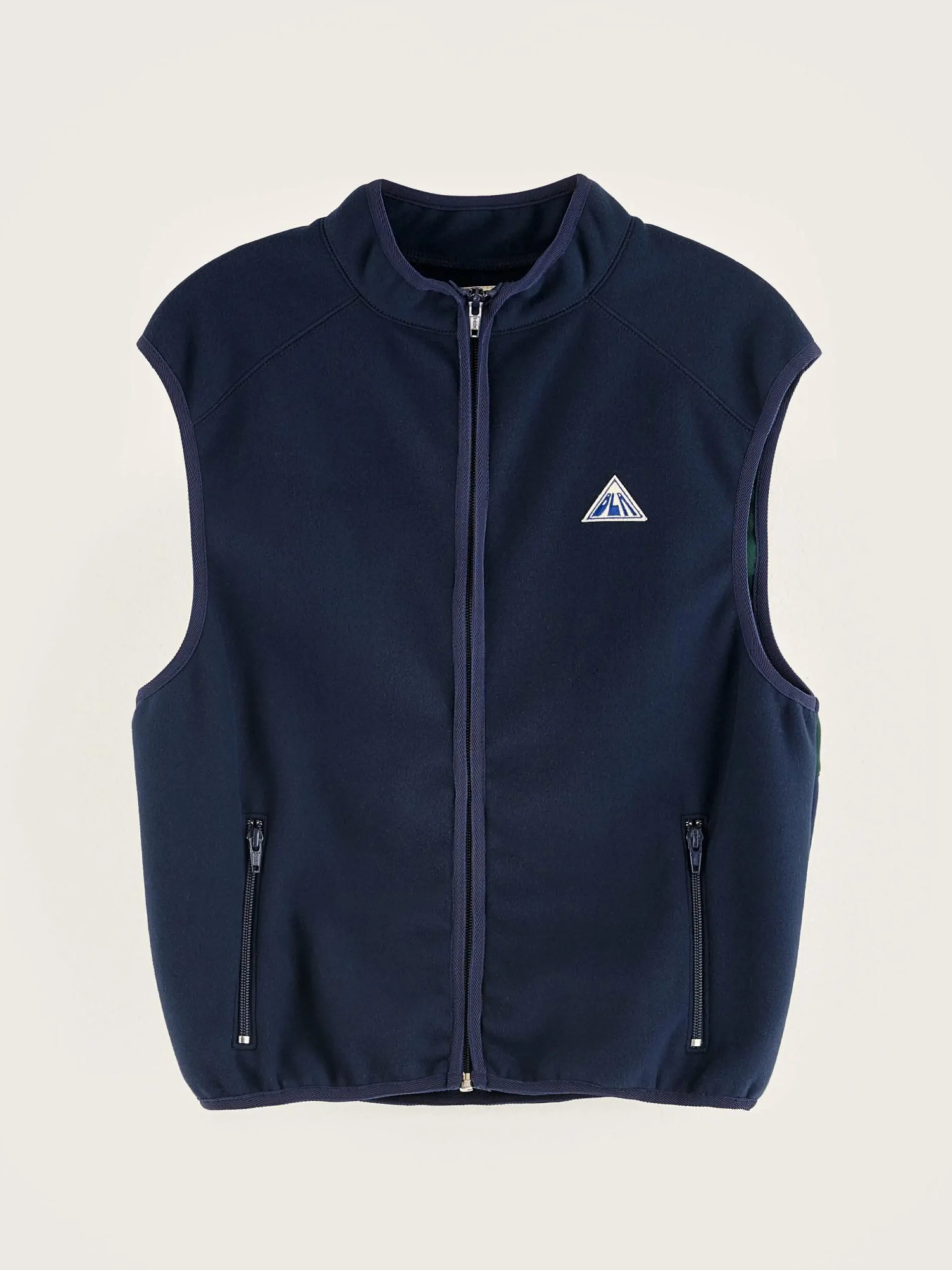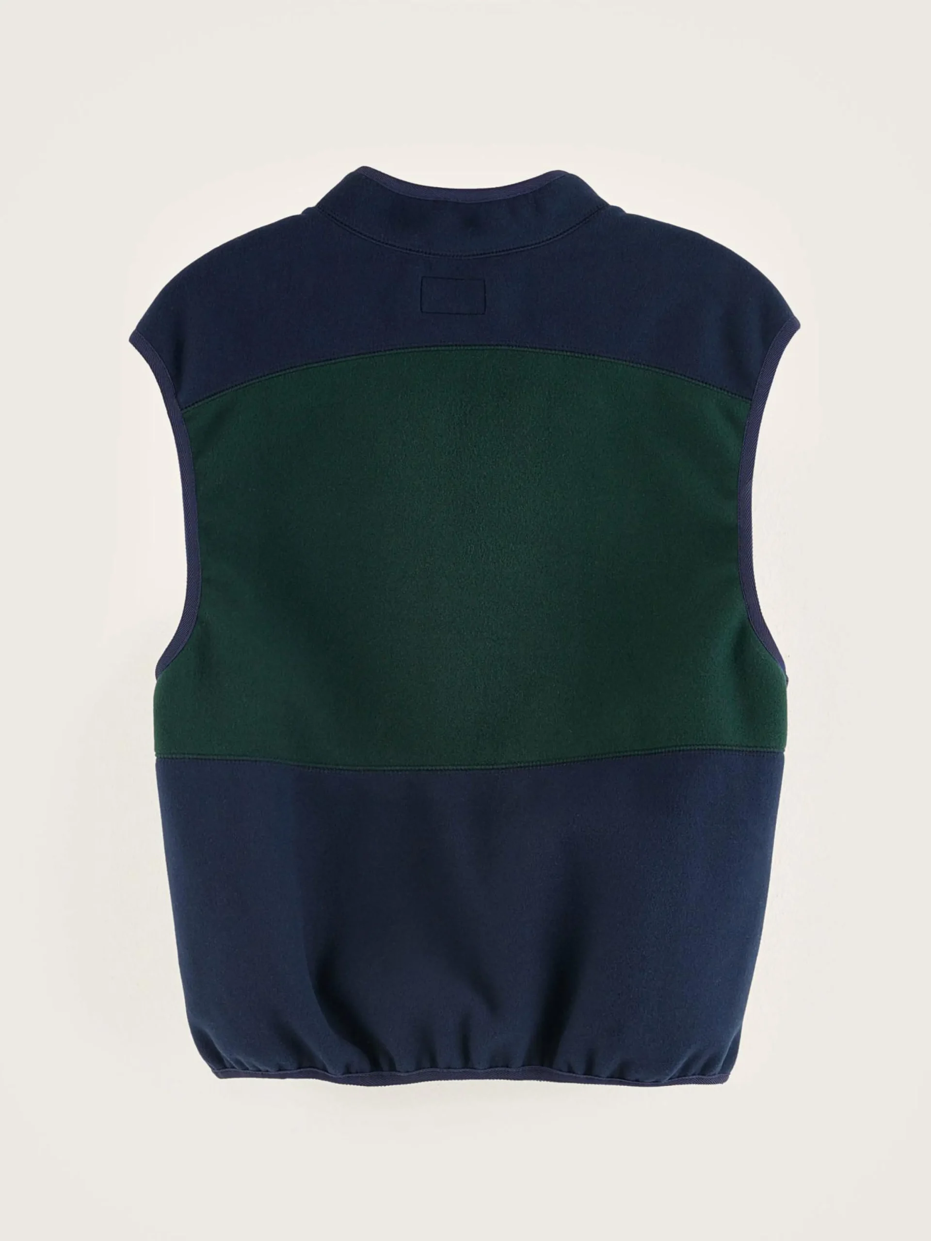Donkerblauwe, mouwloze bodywarmer van polar-fleece.