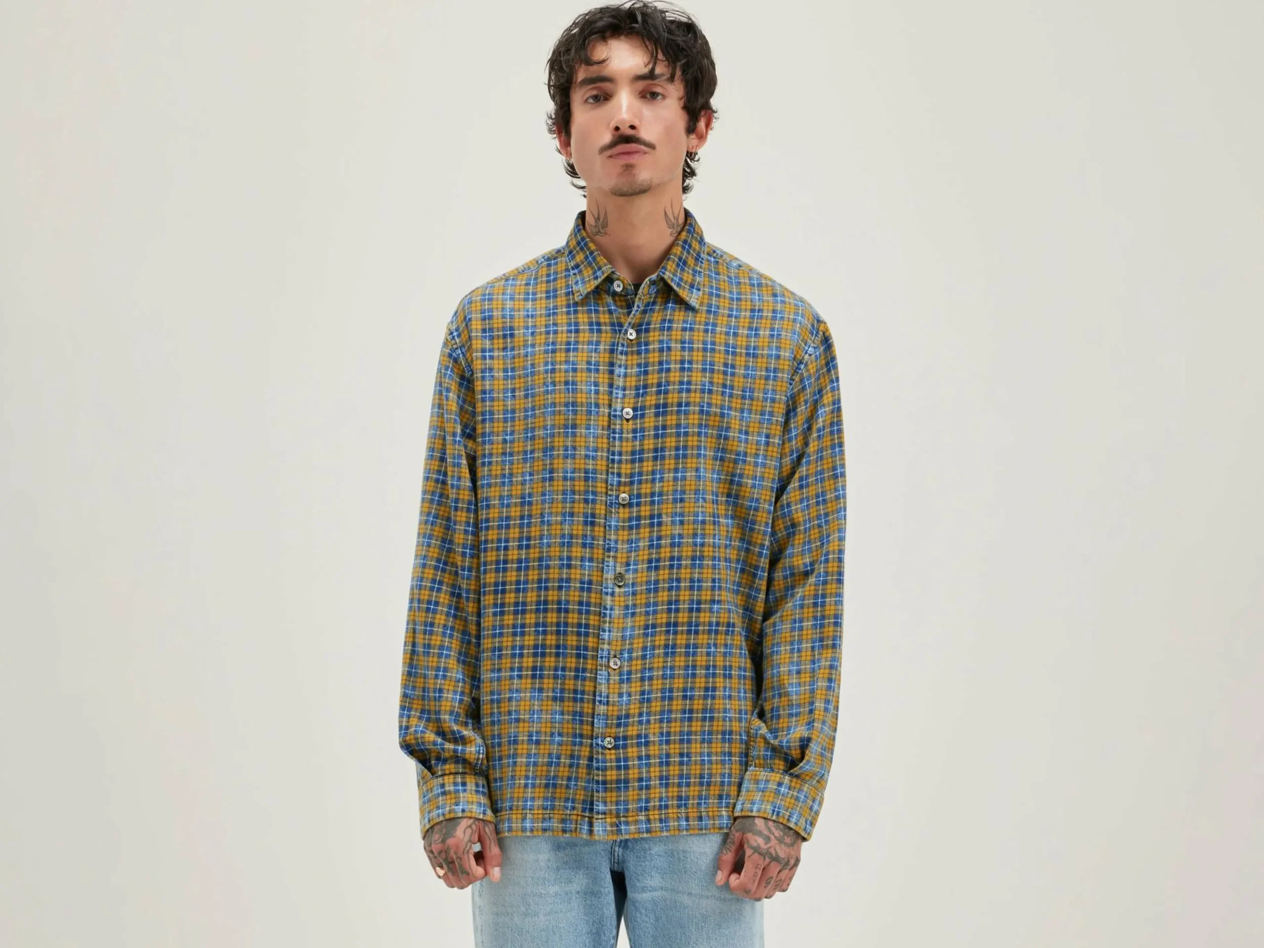Relaxed overhemd van popeline katoen, met indigo ruitjes.