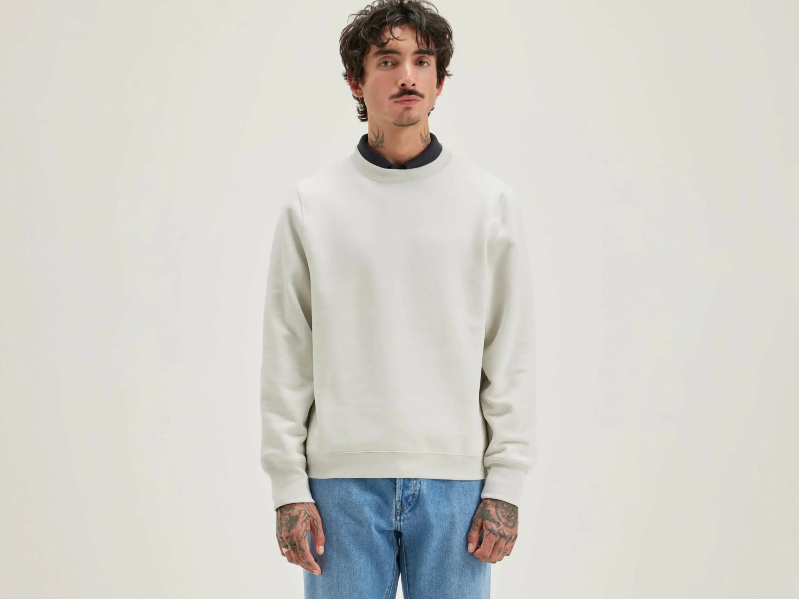 Klassiek sweatshirt met ronde hals, van krijtkleurige jersey met neopreeneffect.