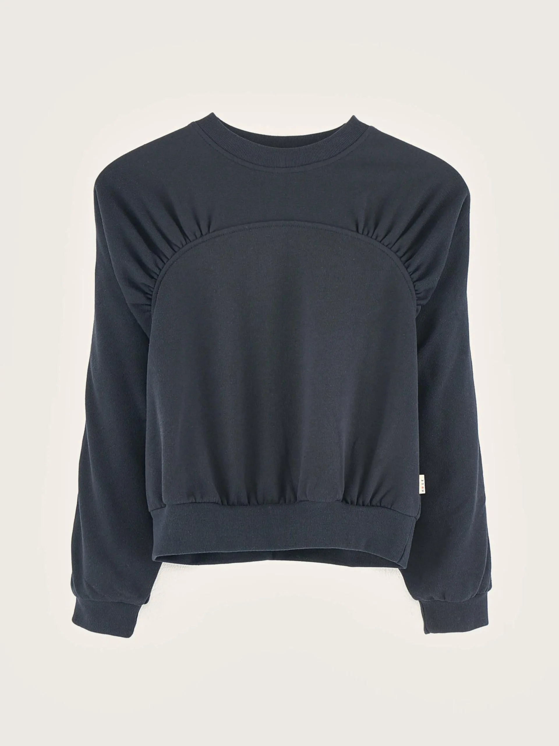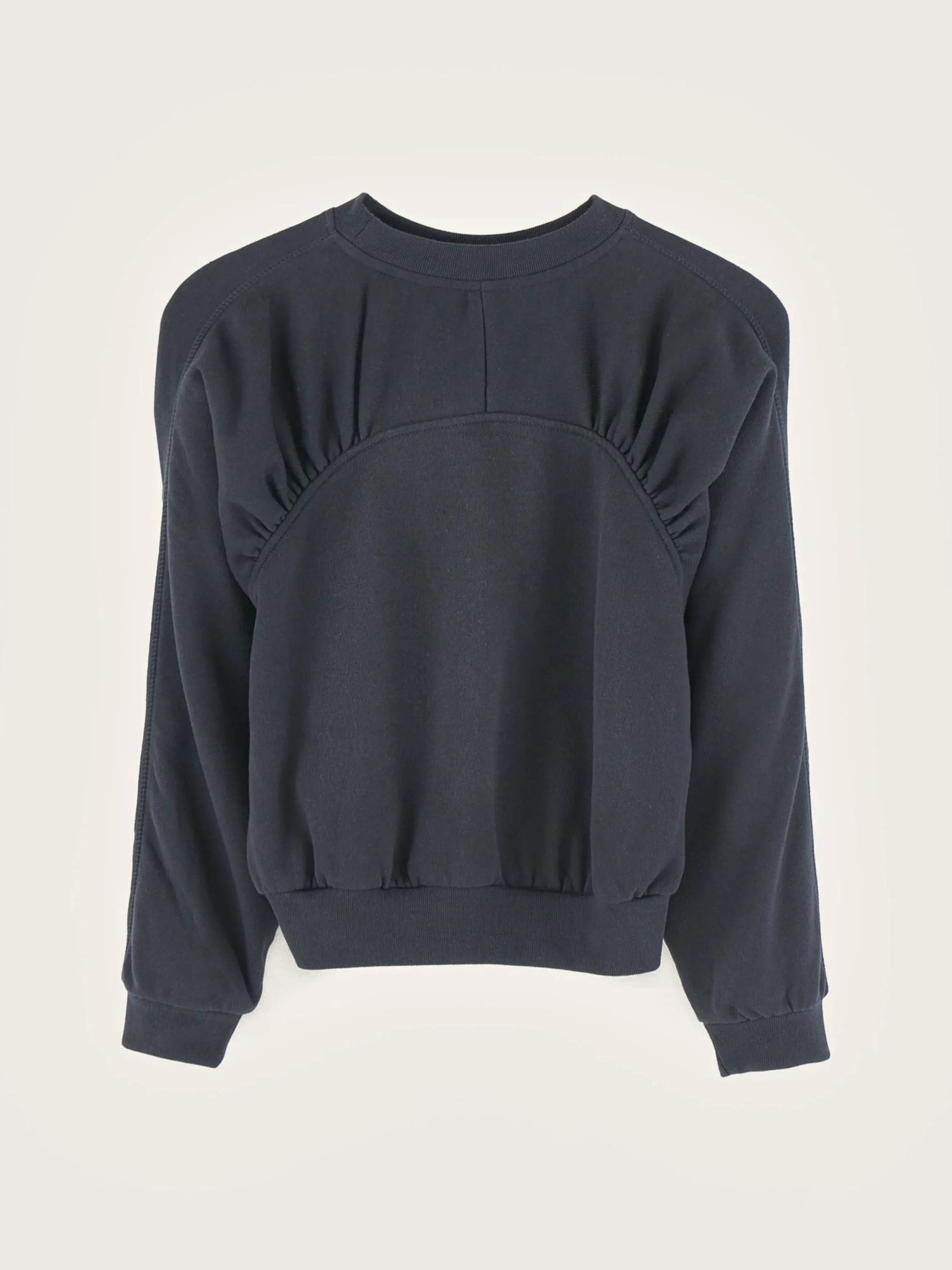 Donkerblauw, comfortabel sweatshirt van geborstelde sponsfleece, met gefronste details.