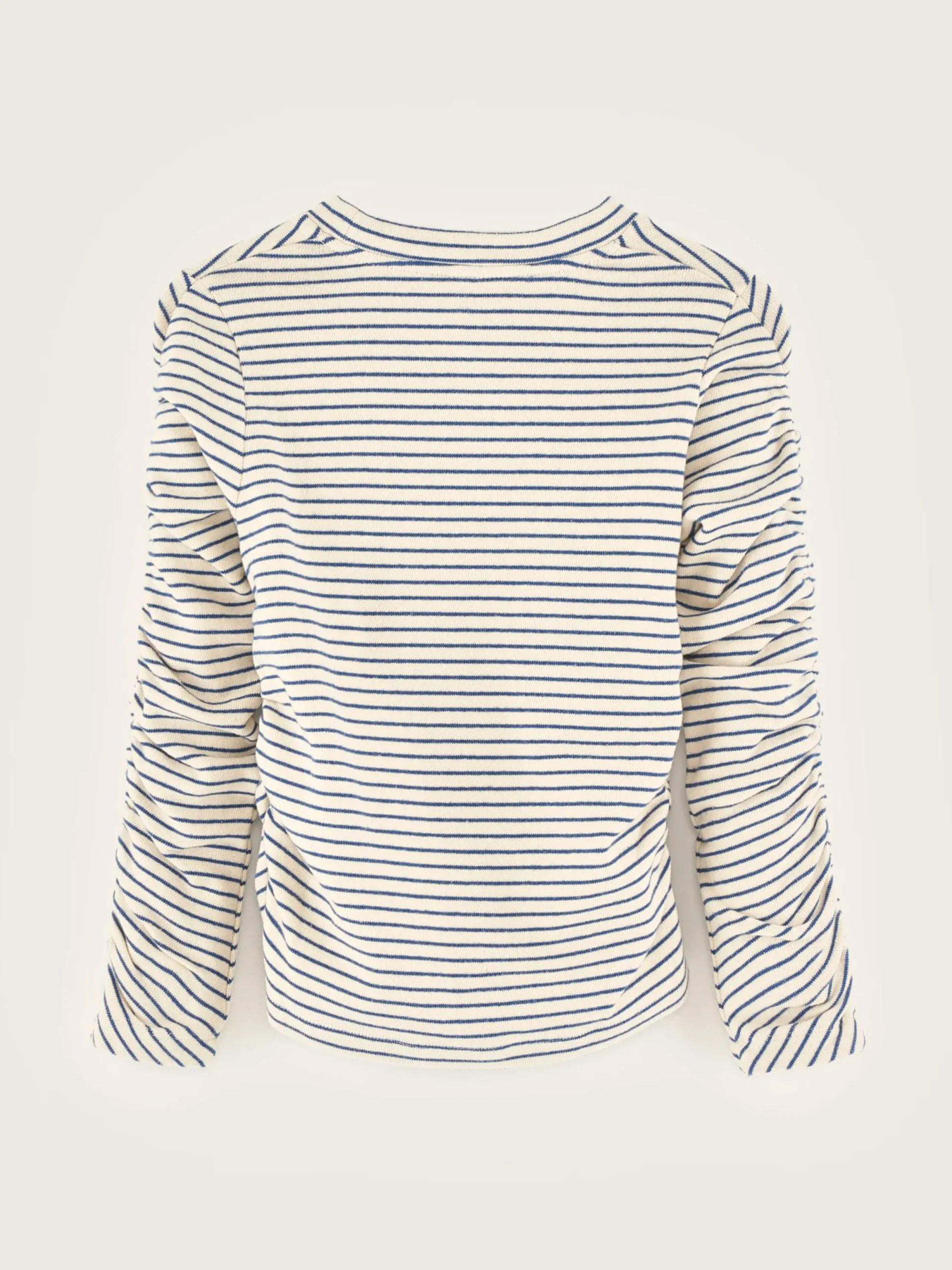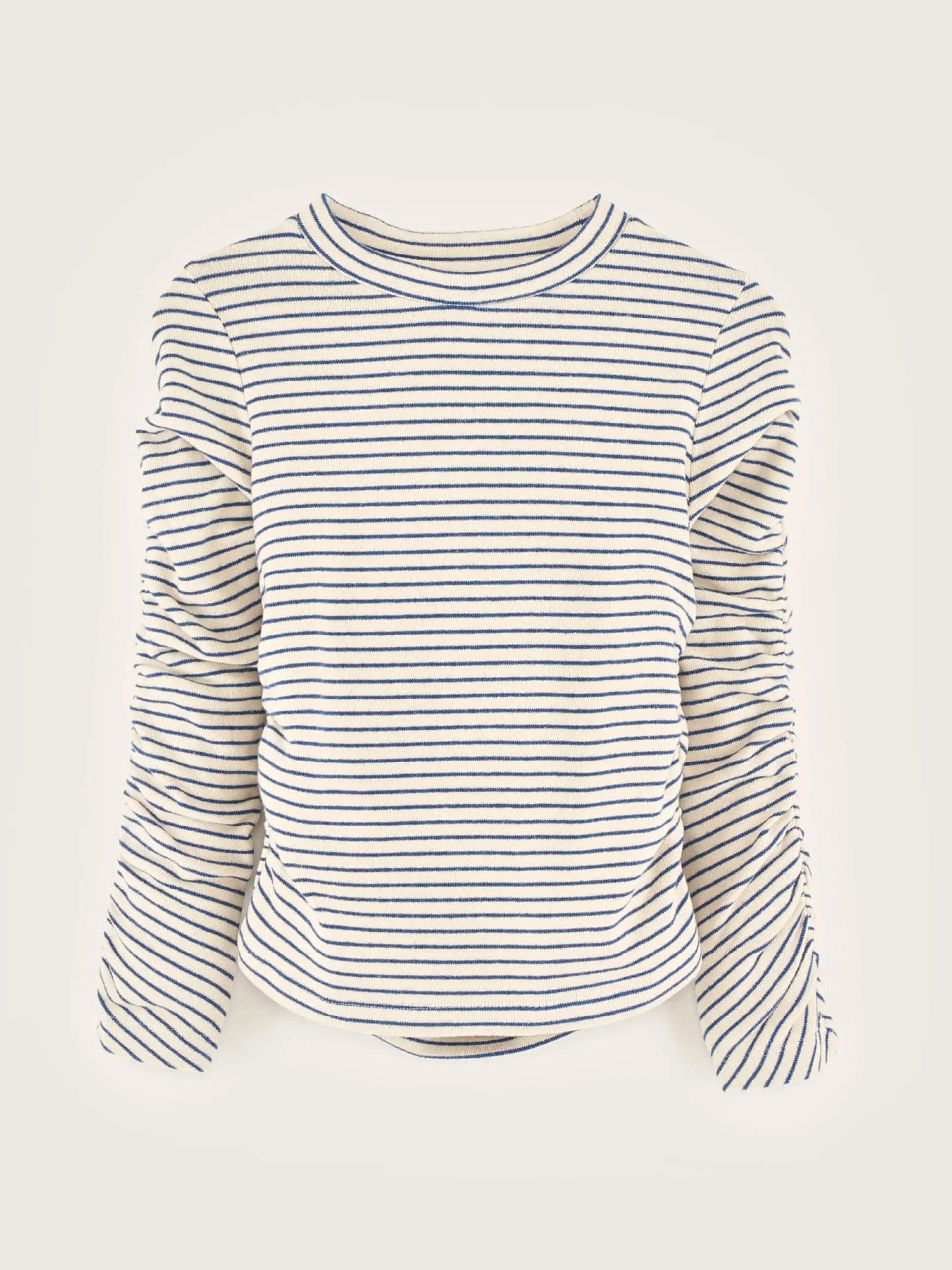 Aansluitend T-shirt met lange mouwen, gefronste details en blauwe strepen.