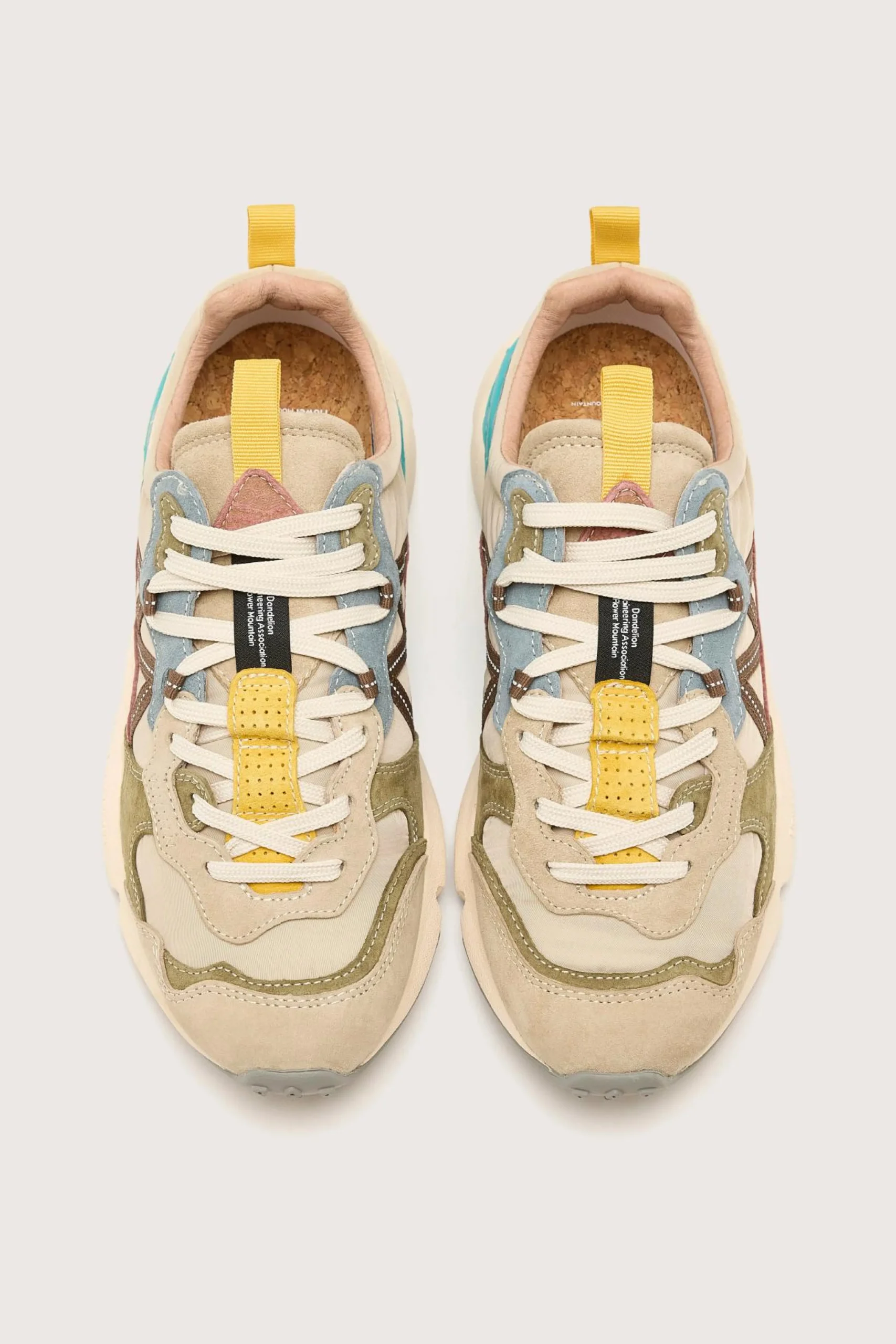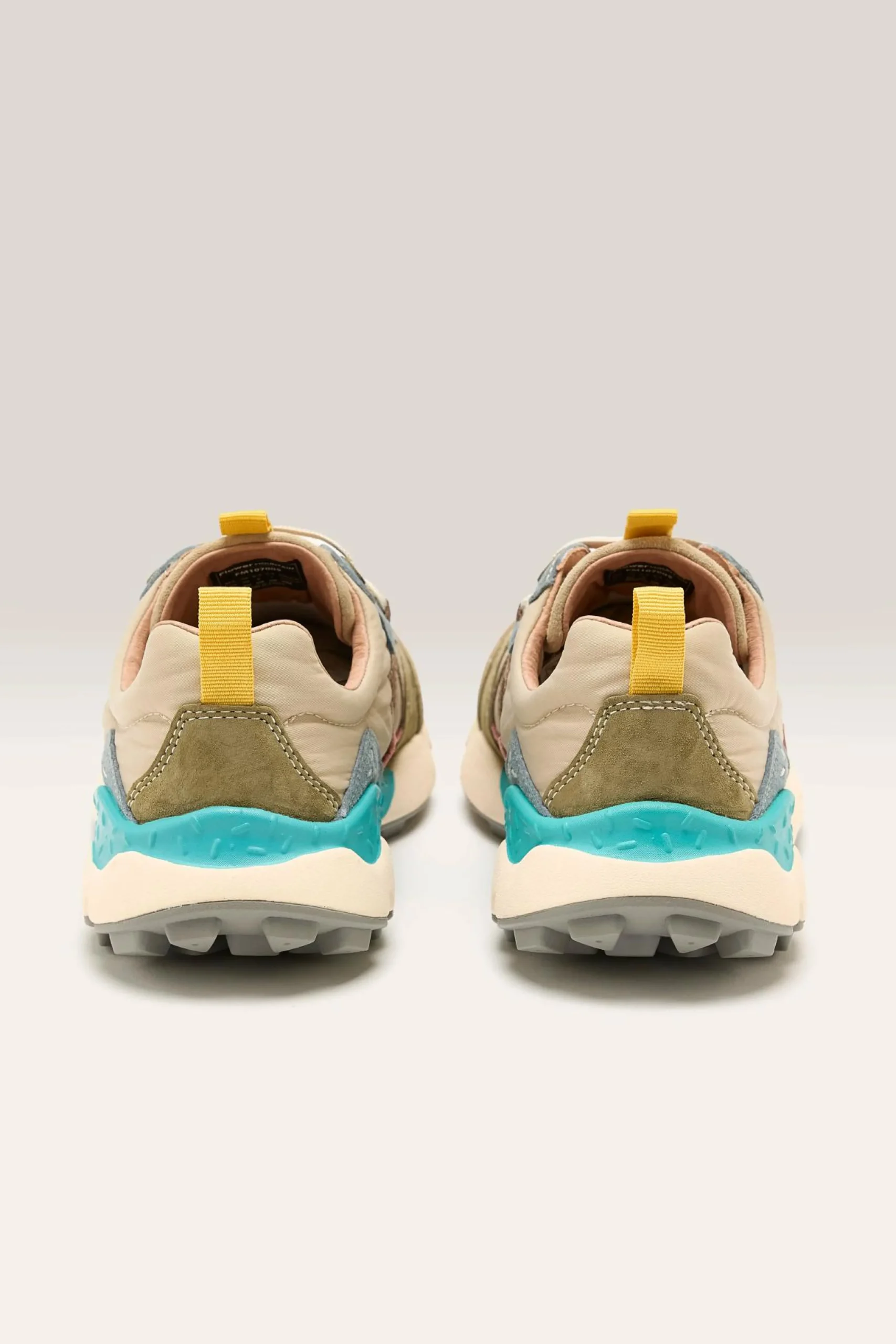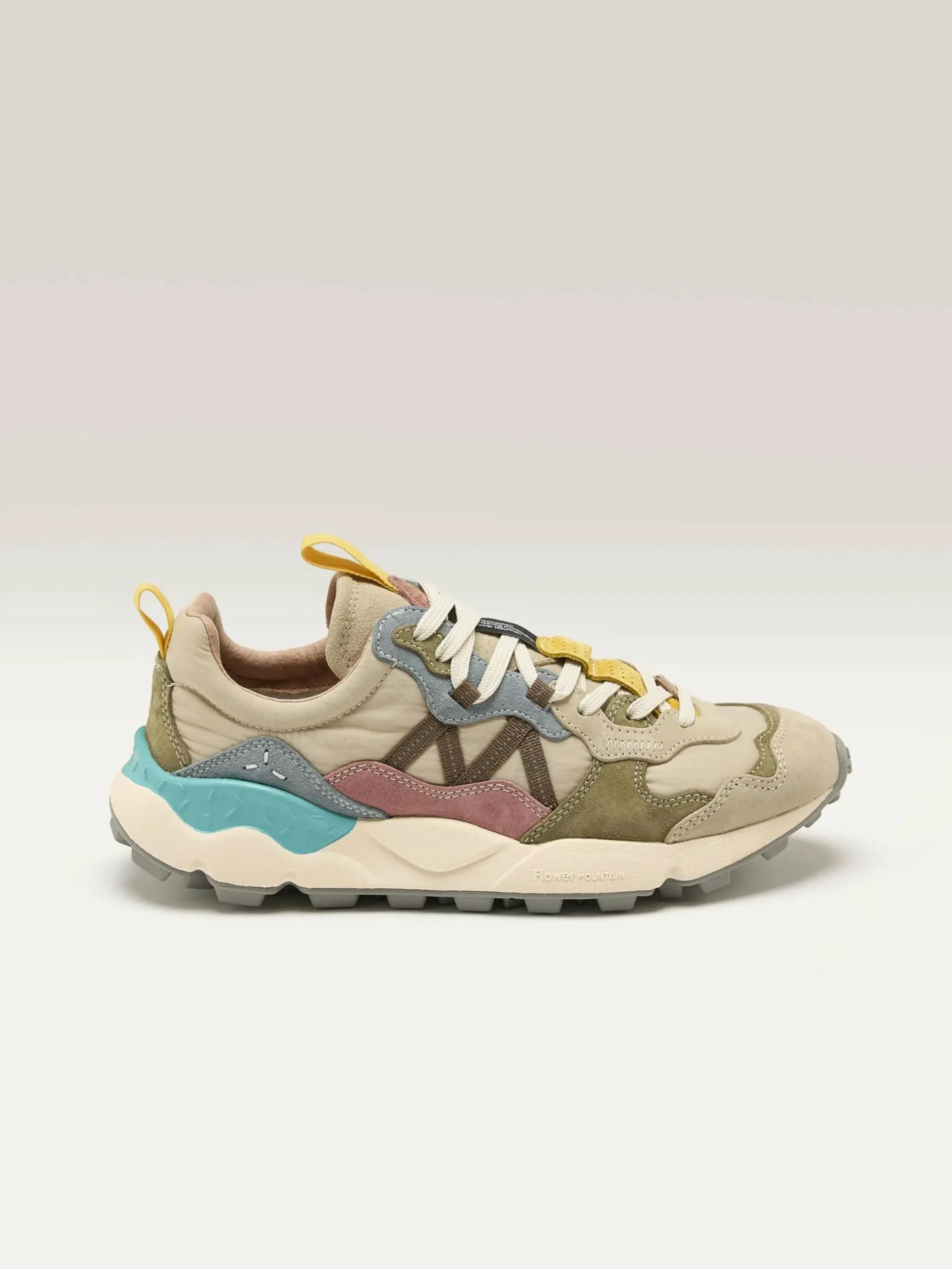 The Flower Mountain LENZAN outdoor sneakers feature a suede upper with technical fabric, removable insoles, and a lightweight rubber sole.