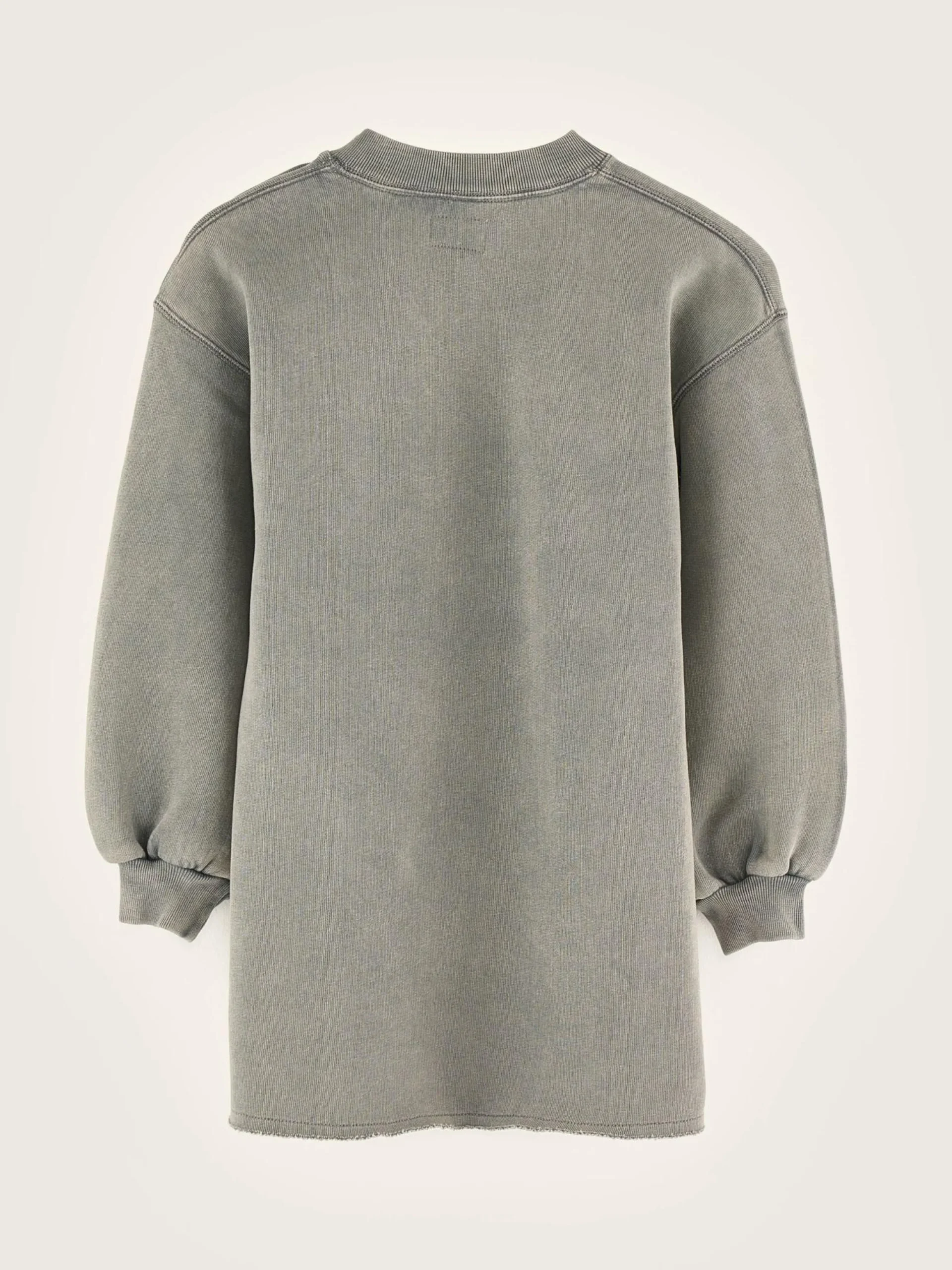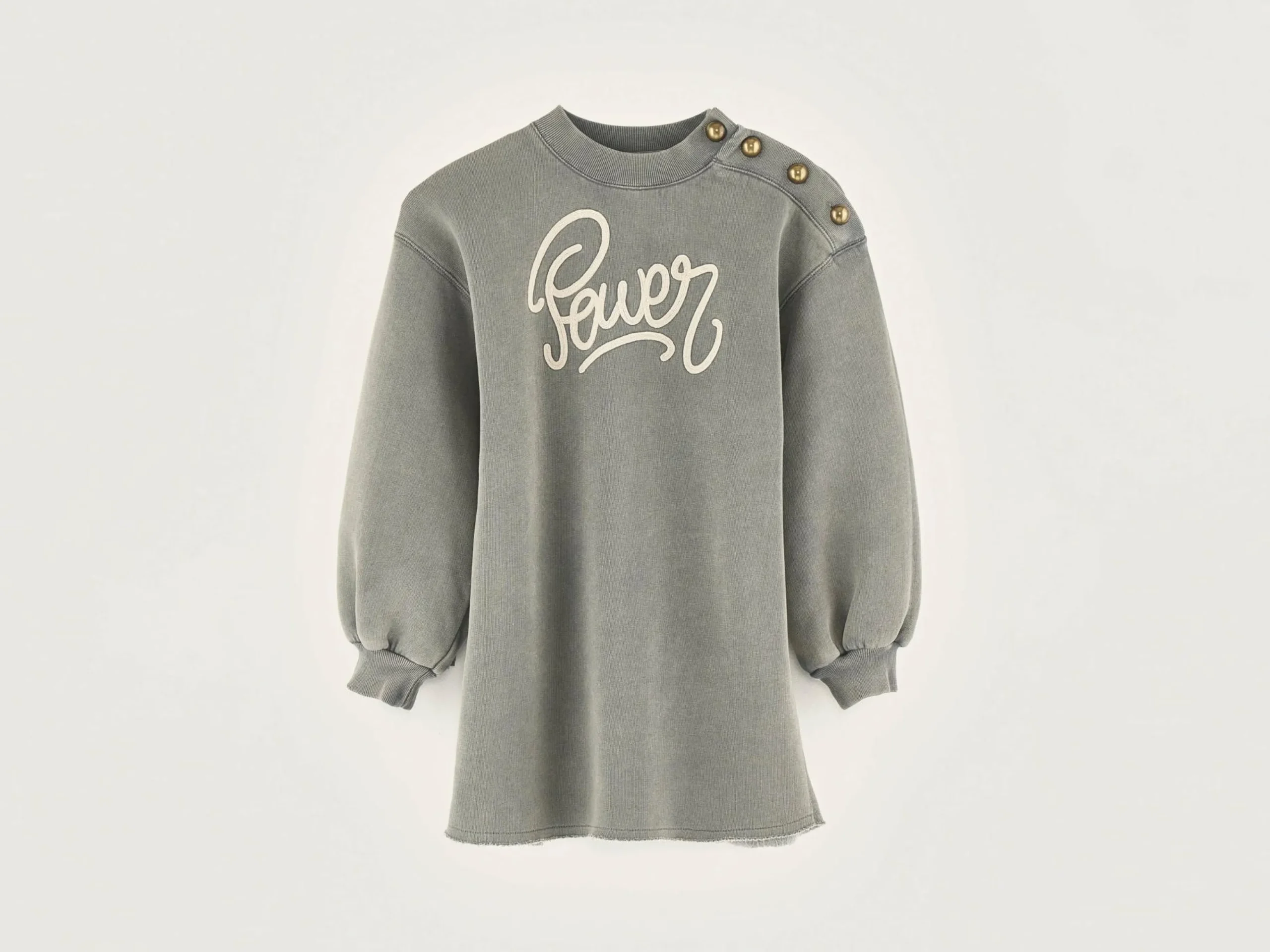 Sweatshirtjurk van zwarte fleecestof met “Power” op de borst geborduurd.