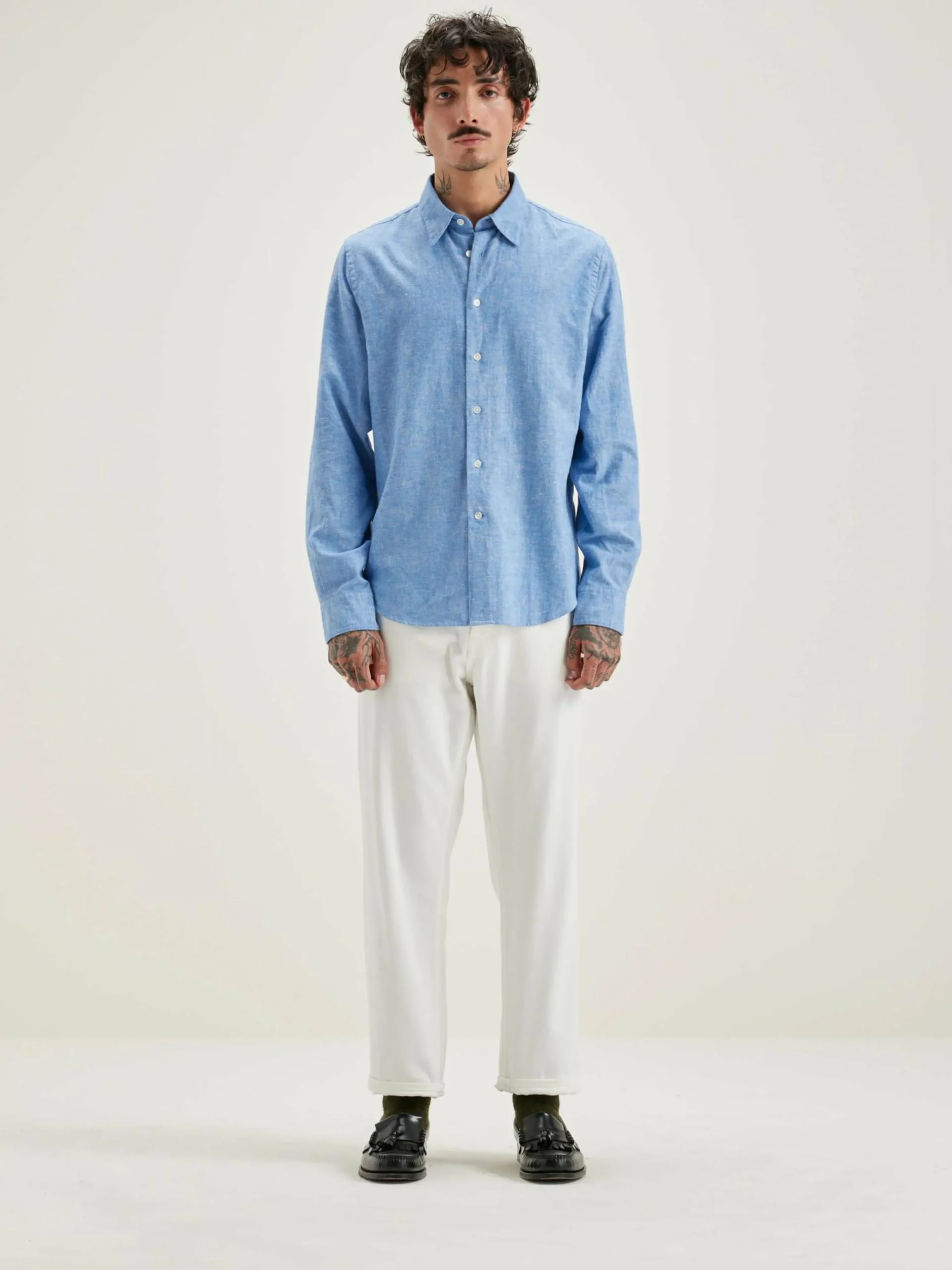 Klassiek overhemd van blauw popeline katoen.