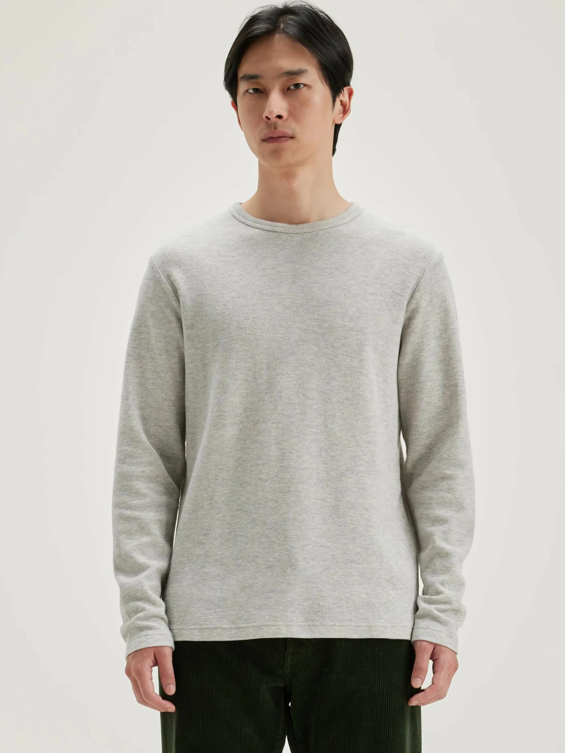 Regular crewneck t-shirt met lange mouwen in heidegrijze dubbelzijdige katoenjersey.