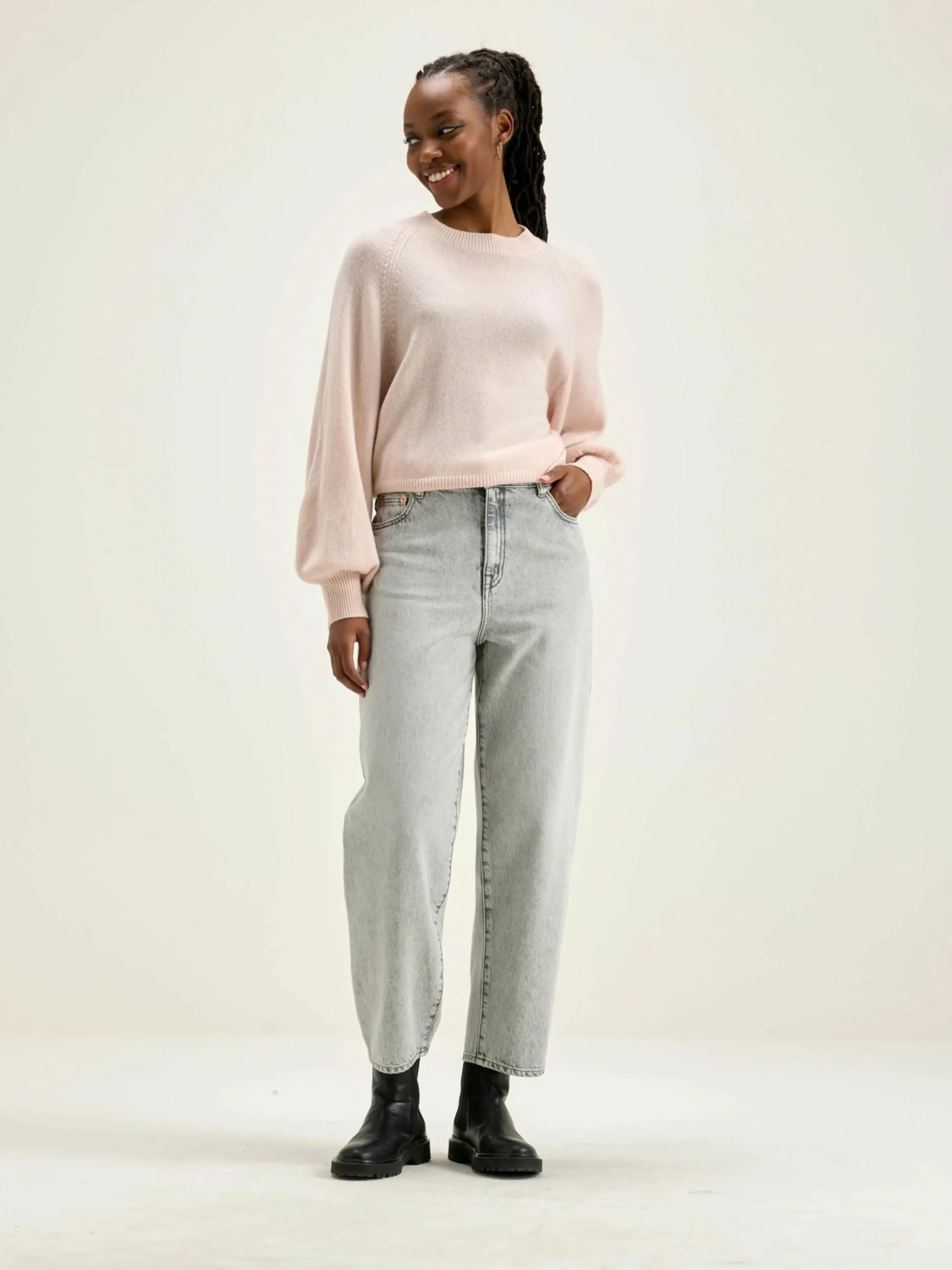 Trui met crew neck, regular model, van lichtroze garen.