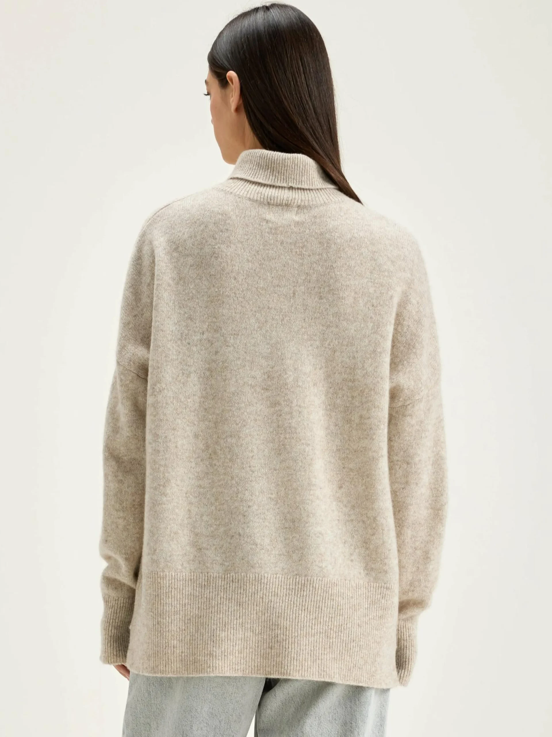 Grijs gemêleerde, oversizede trui met turtle neck en extra lange mouwen.