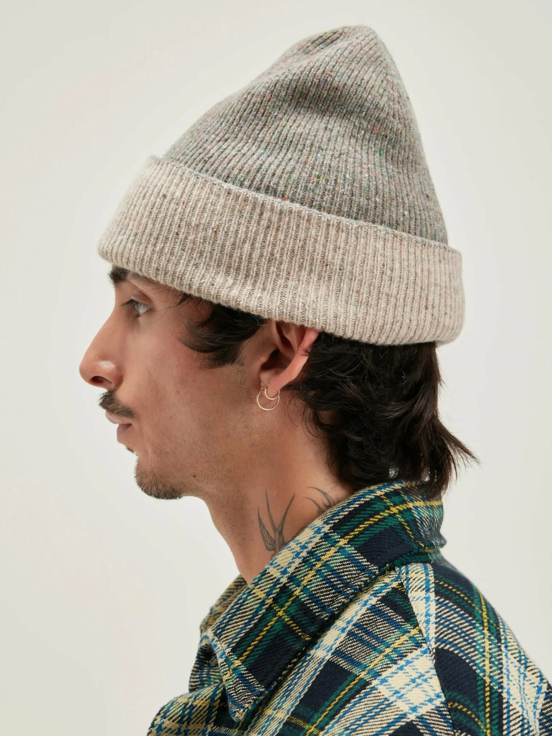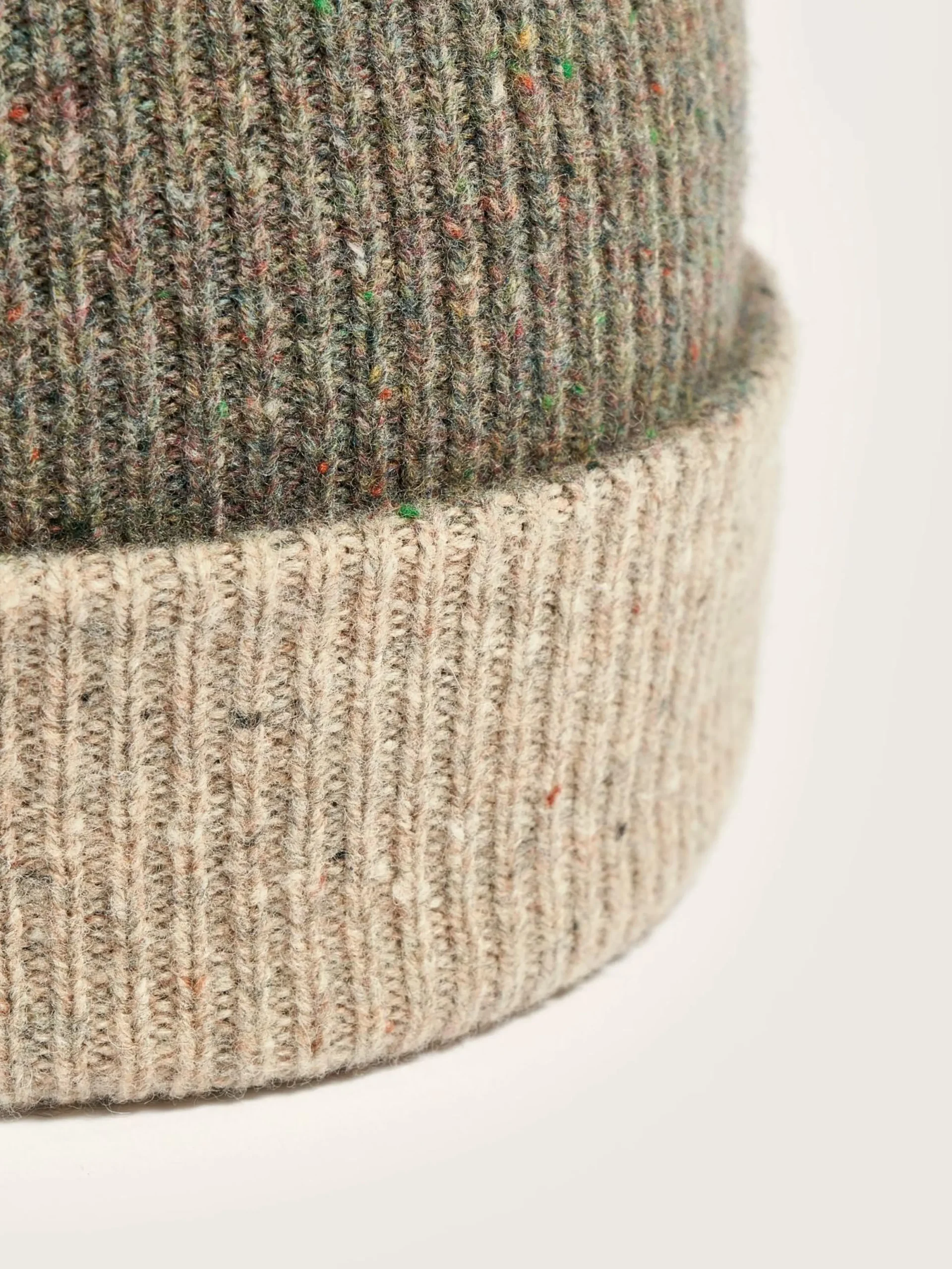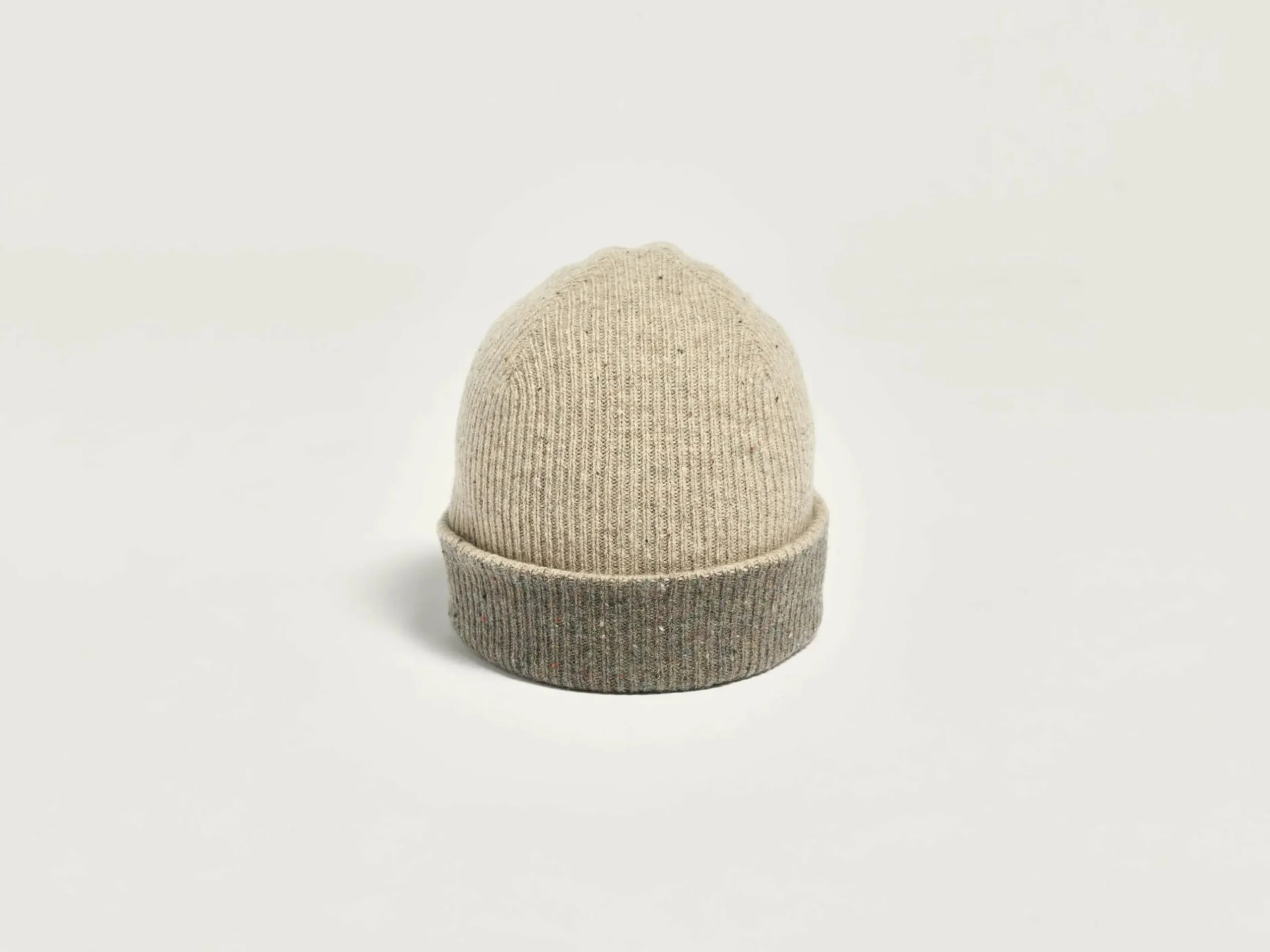 Omkeerbare beanie van geribbelde merinowol.