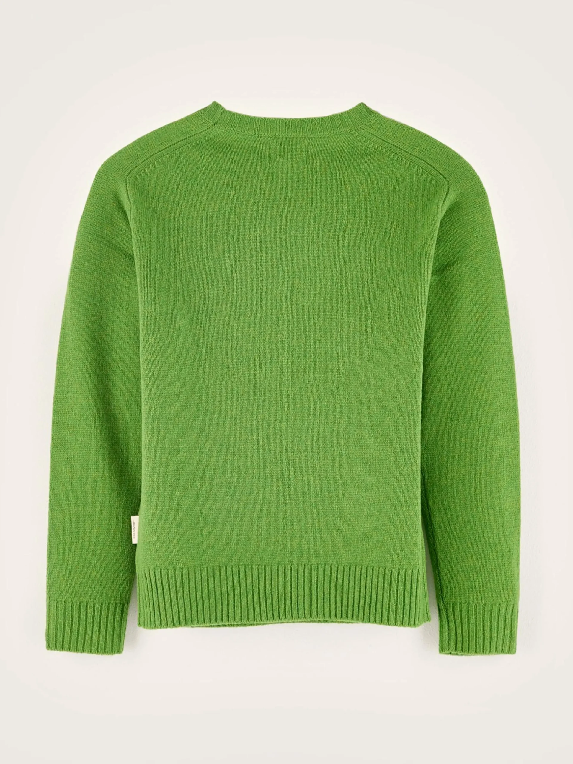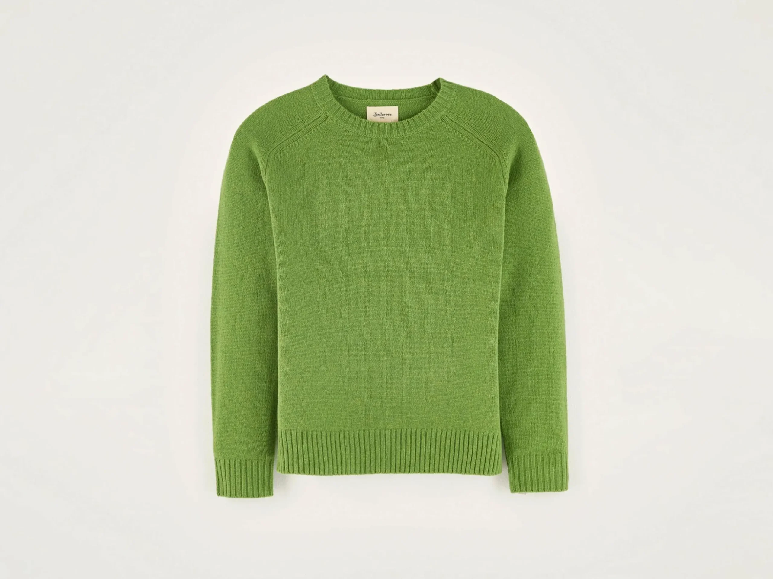 Comfortabele, klassieke sweater met ronde hals, van matchagroene merinowol.