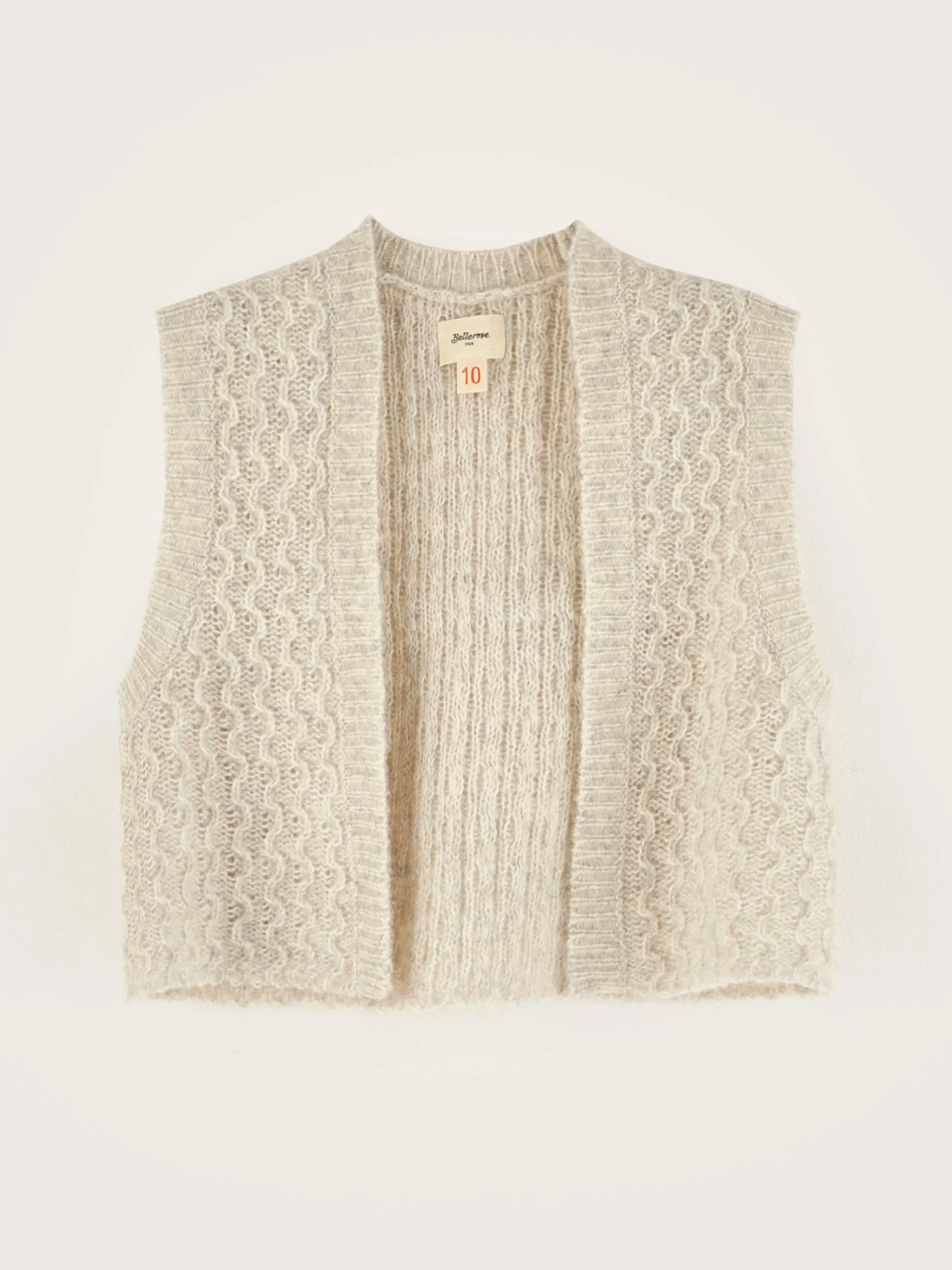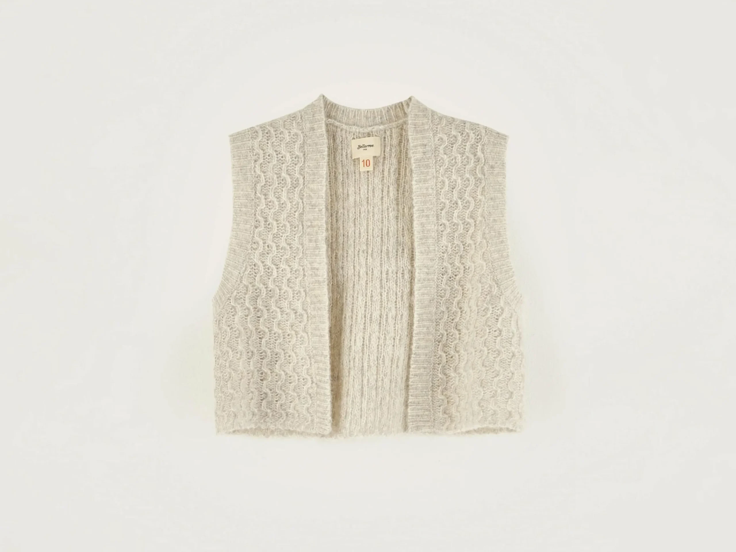 Oestergrijs mouwloos, comfortabel, gebreid vest.