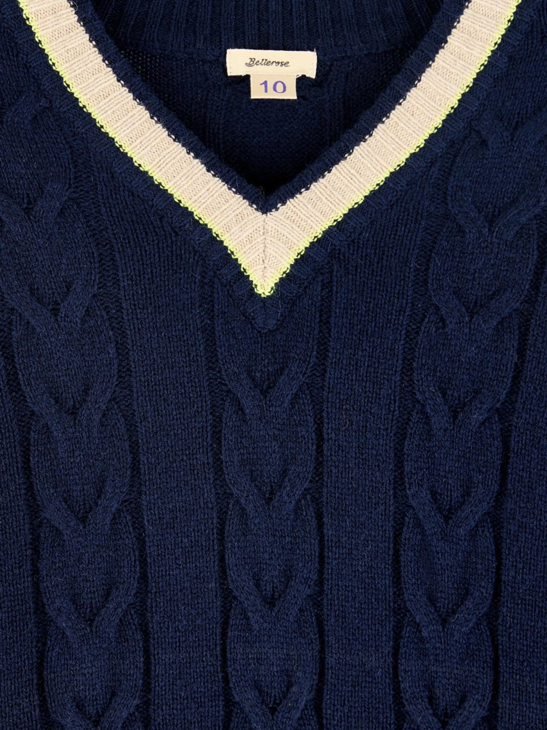 Comfortabele, donkerblauwe sweater met V-hals, van kabeltricot.