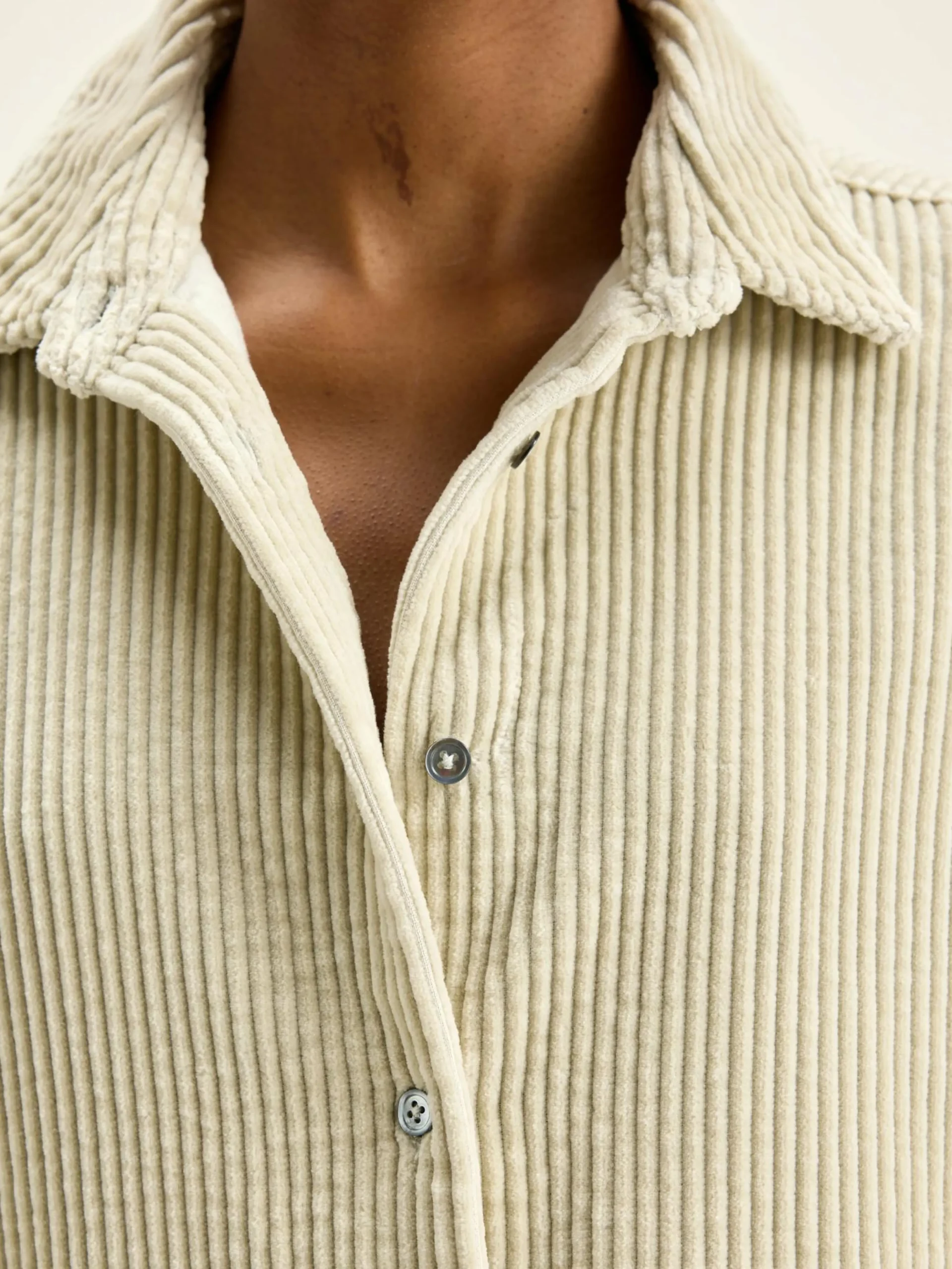 Oversized hemd van ecru corduroy, met klassieke kraag en lage schouderlijn.