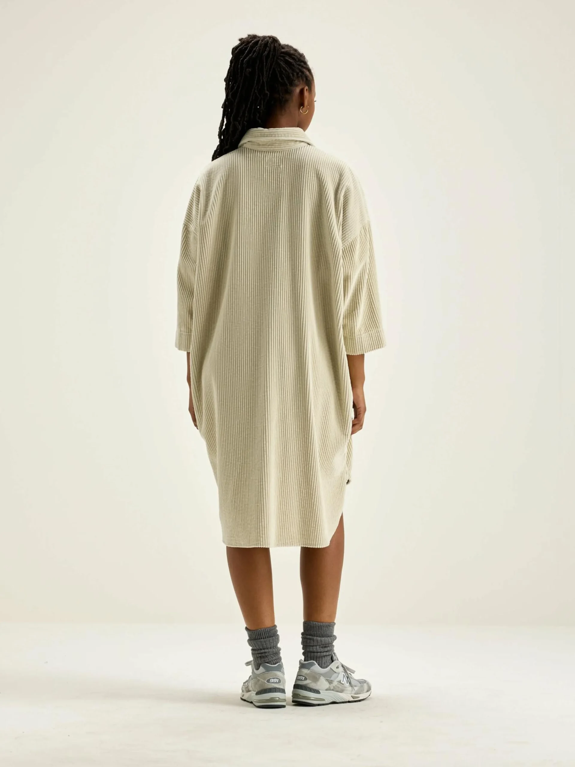 Ecru, oversizede hemdjurk van katoencorduroy met brede rib.