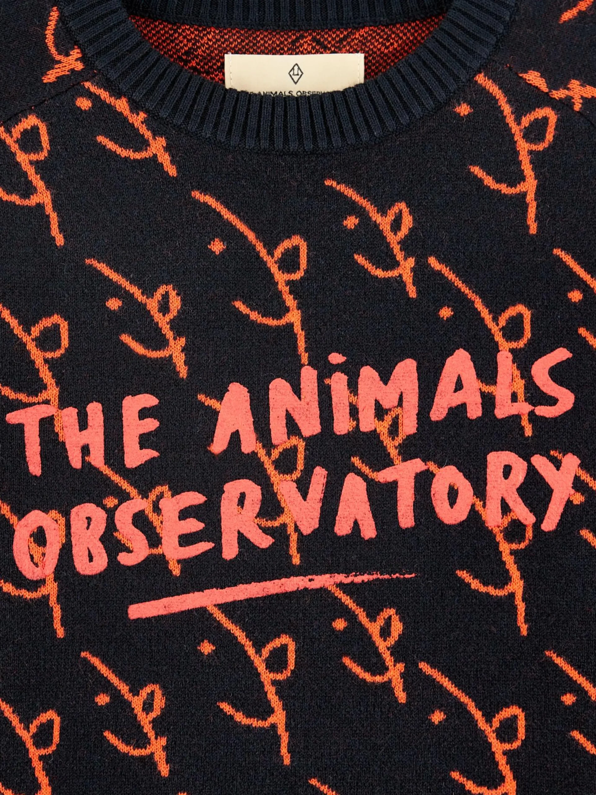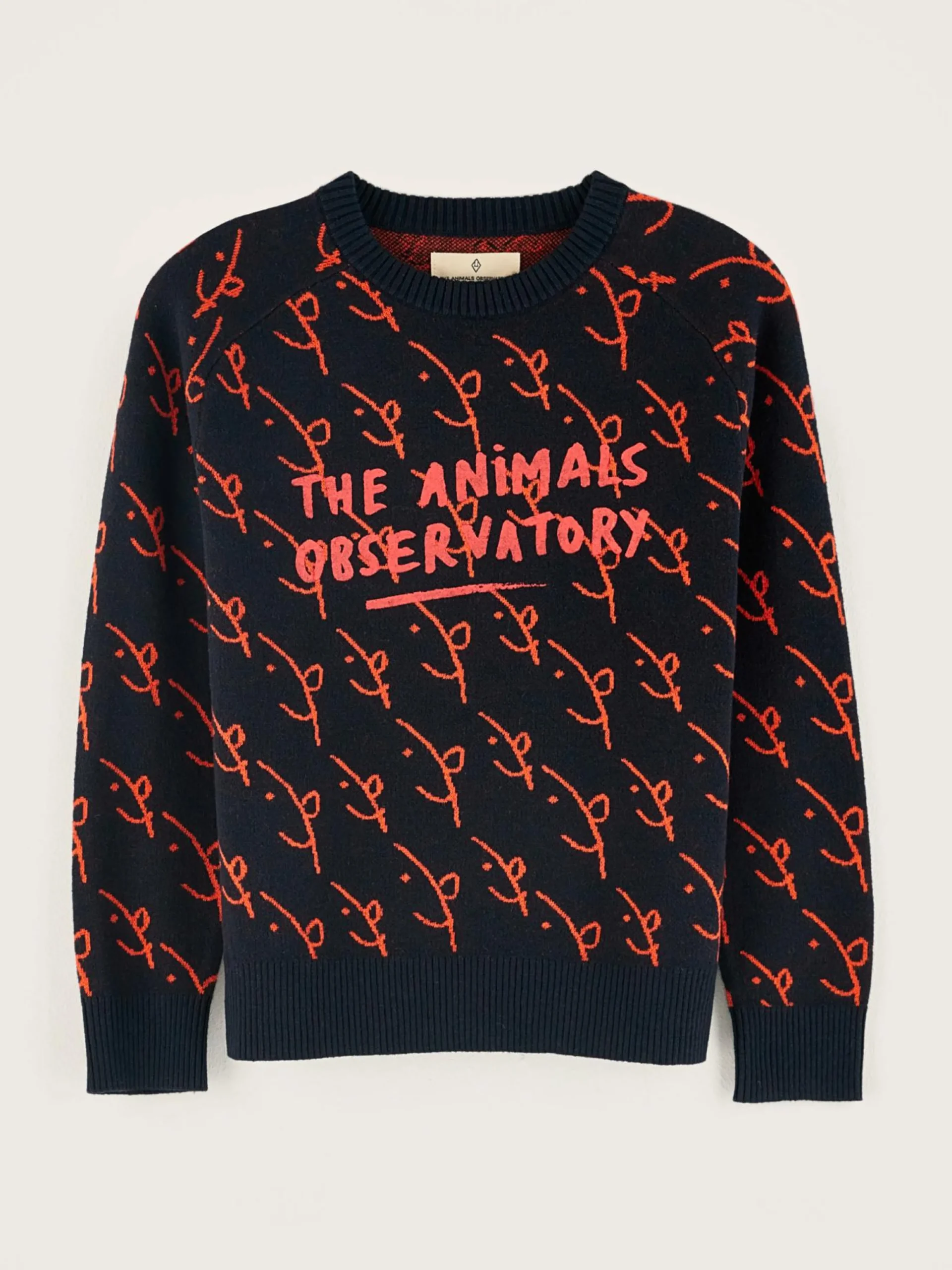Klassieke sweater met V-hals, van katoen en wol, volledig bedrukt met een jacquardpatroon en een Bellerose x The Animal Observatory-print op de borst en op de rug.