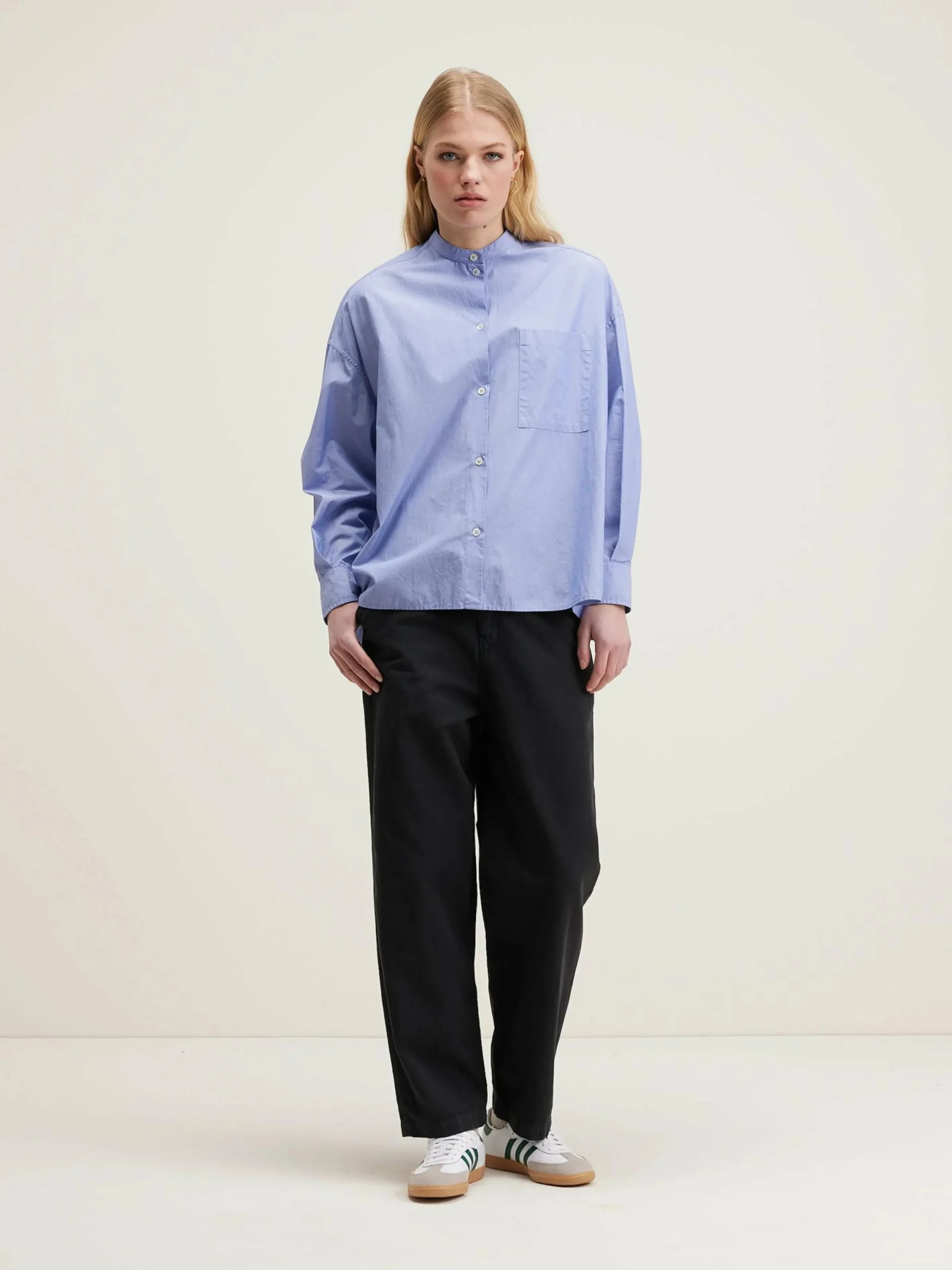 Oversized button-down hemd van gestreept popelinekatoen met een opgestikte zak en een kleine opstaande kraag.