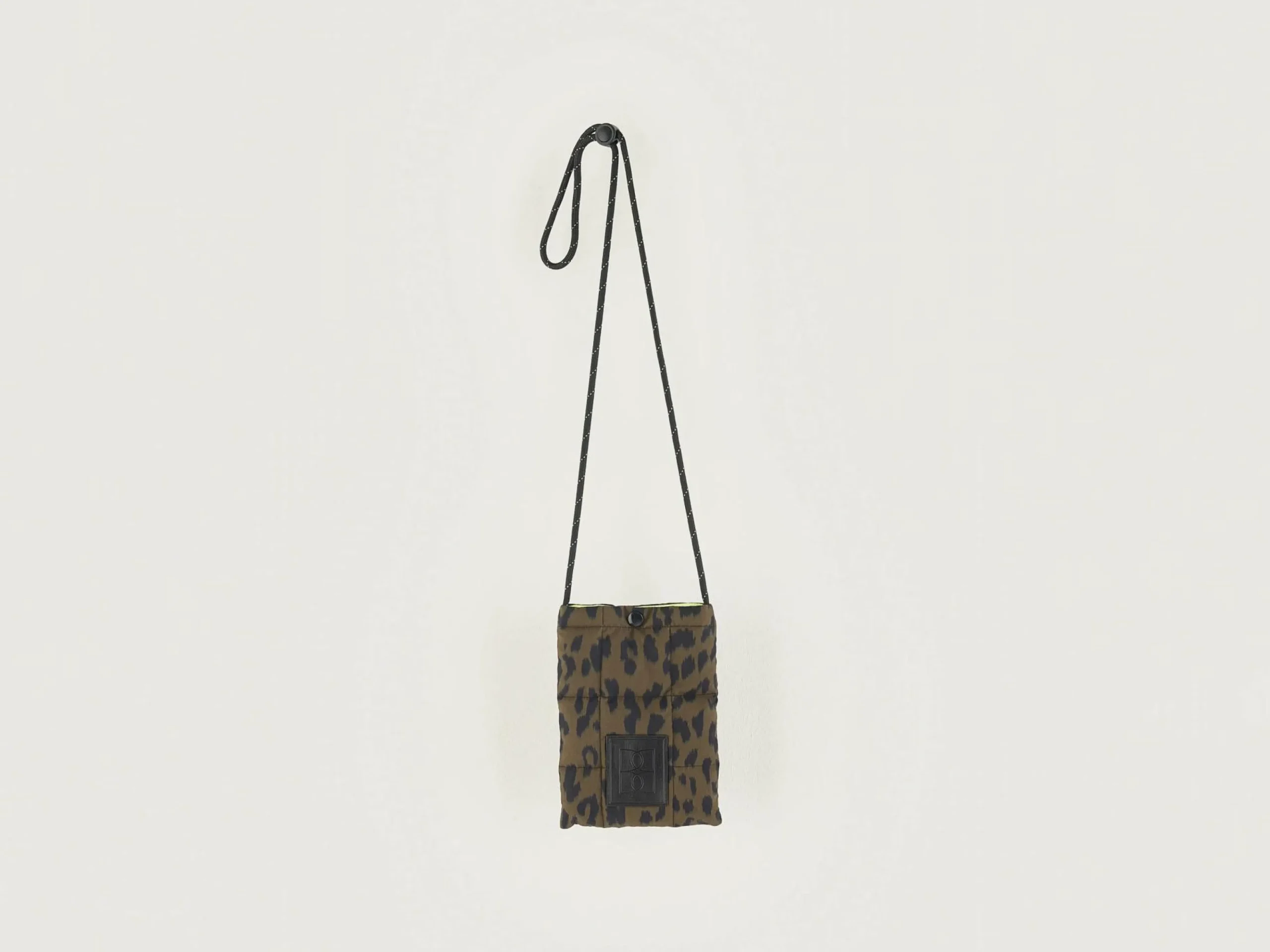 Gewatteerde telefoontas met luipaardprint.