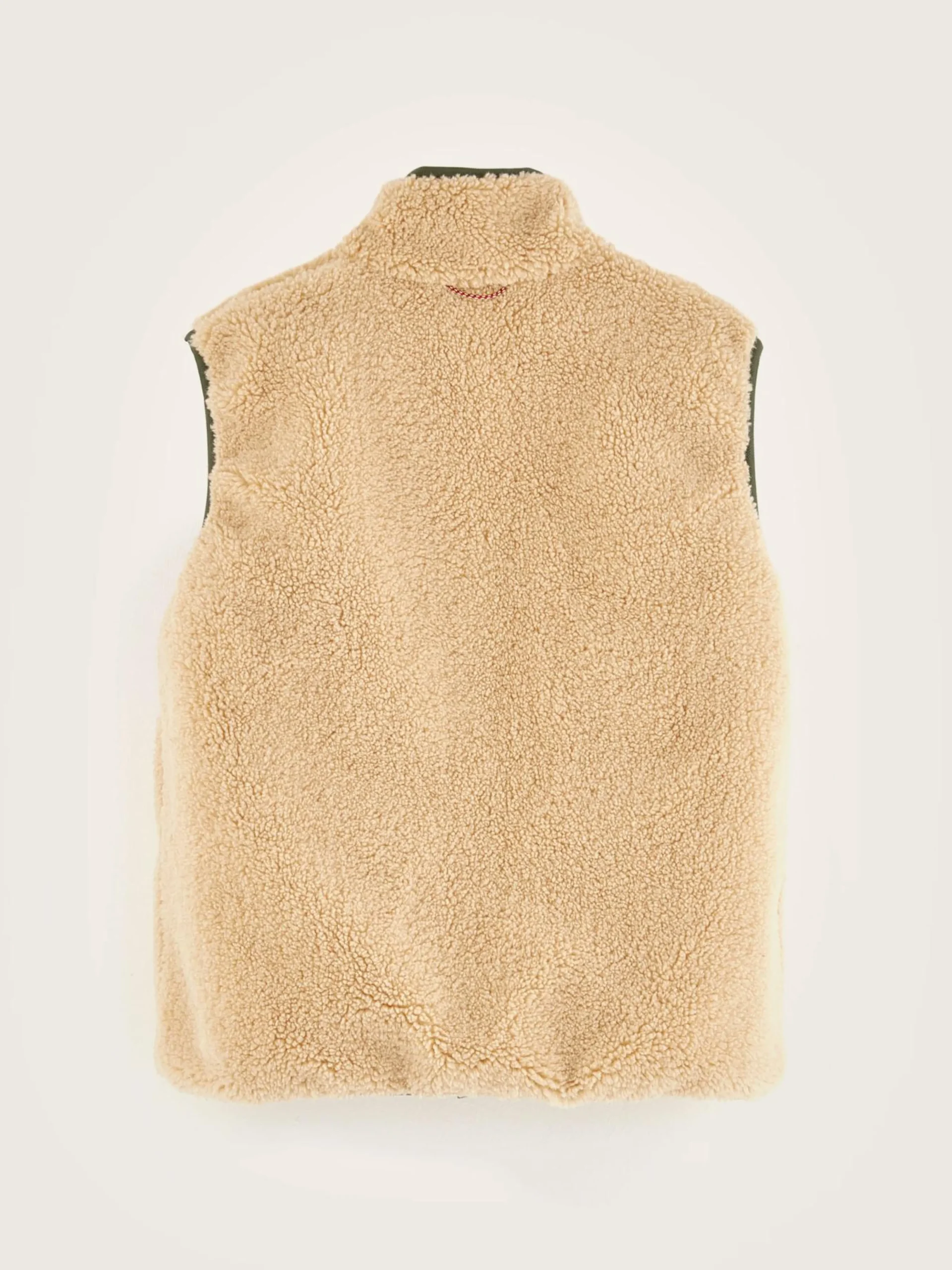 Mouwloze, omkeerbare bodywarmer met luipaardprint.