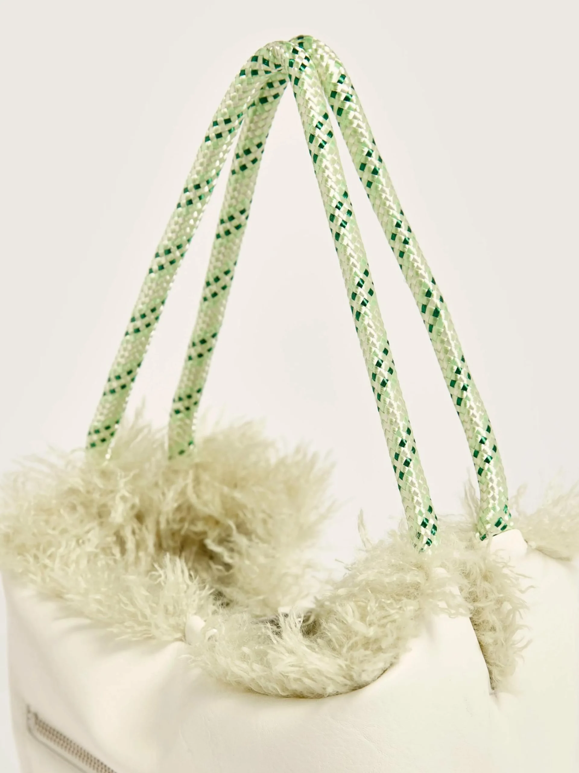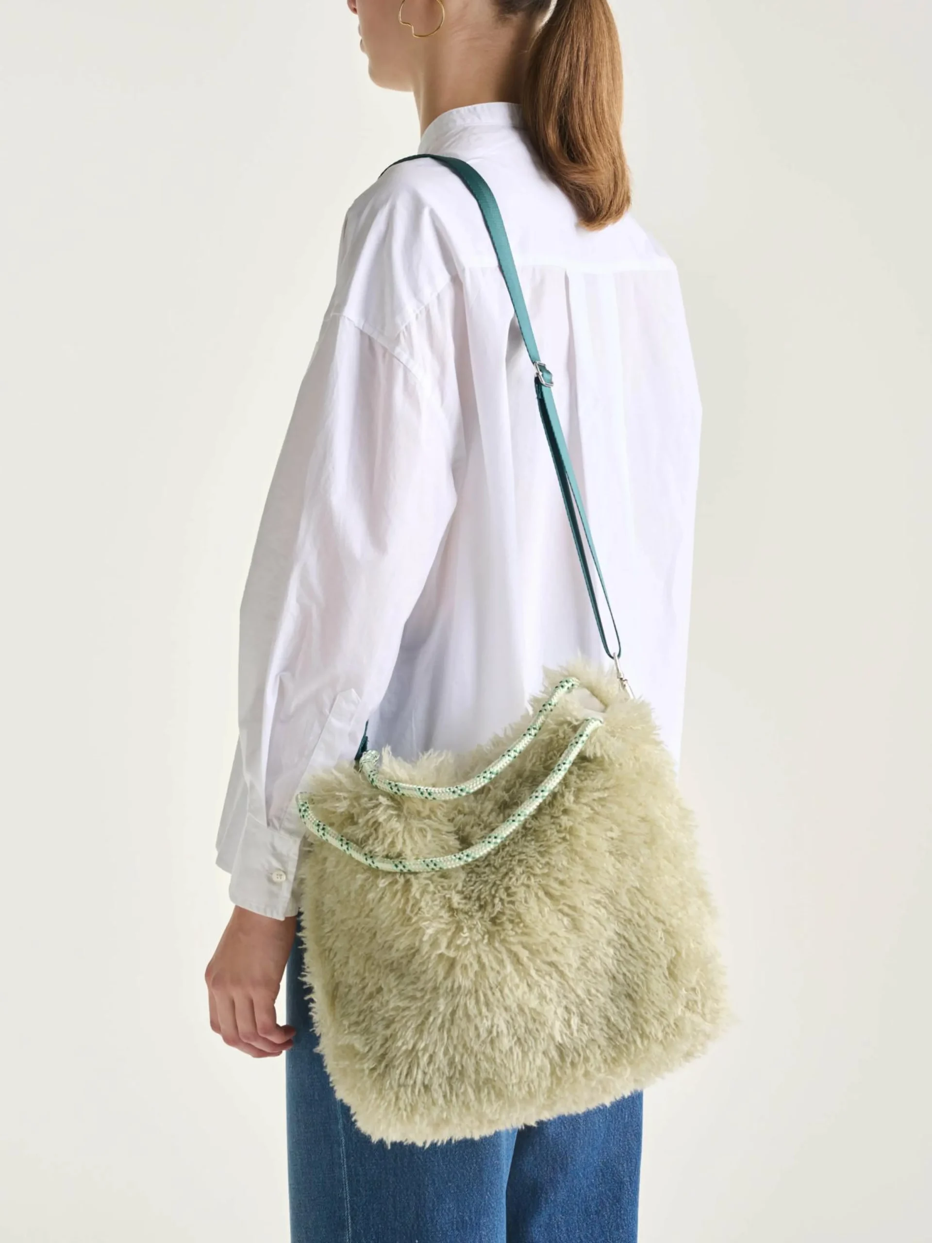 Omkeerbare, kardemomgroene tas van nepleer met twee paar handvaten.