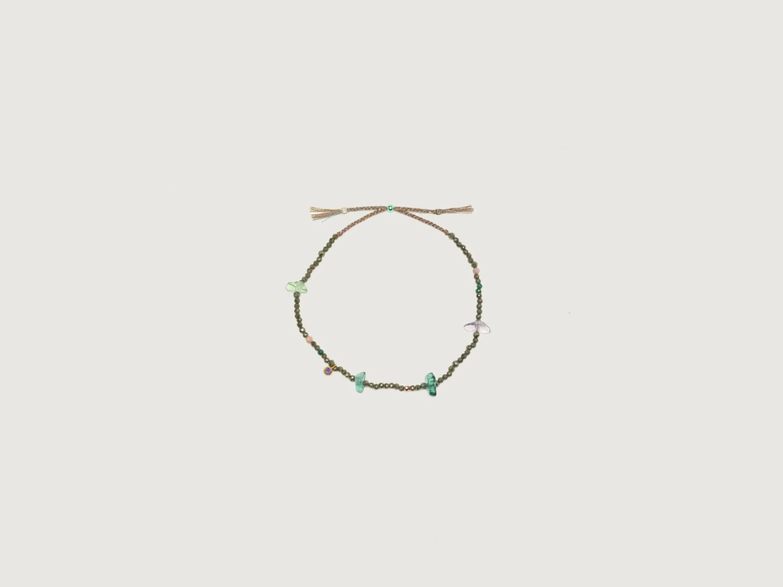 De Falcon armband is een handgemaakte verstelbare gevlochten koordarmband versierd met kleurrijke edelstenen, kralen en bedels.