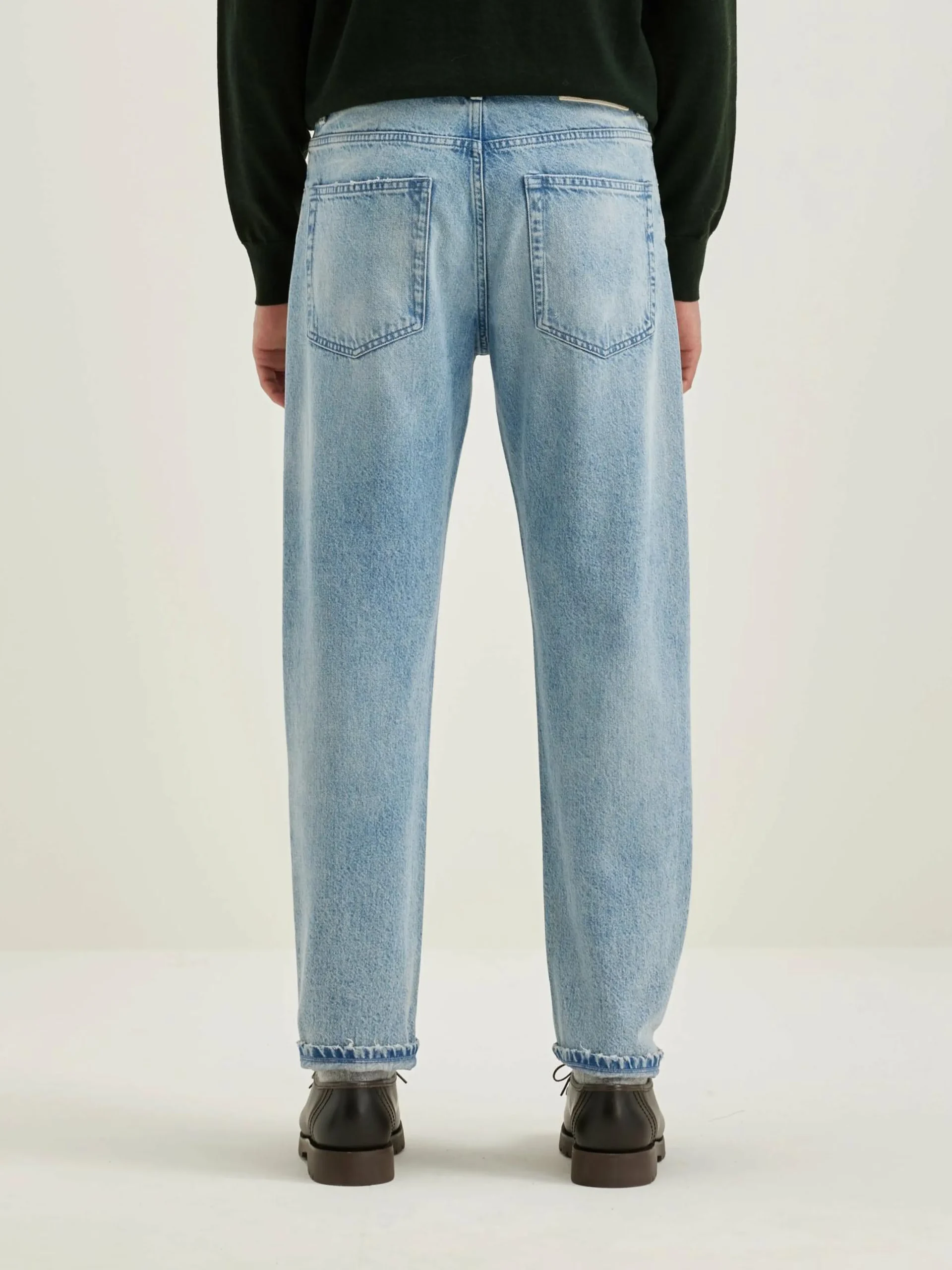 Regular fit jeans met normale taille, van lichtblauw gebleekt katoendenim.