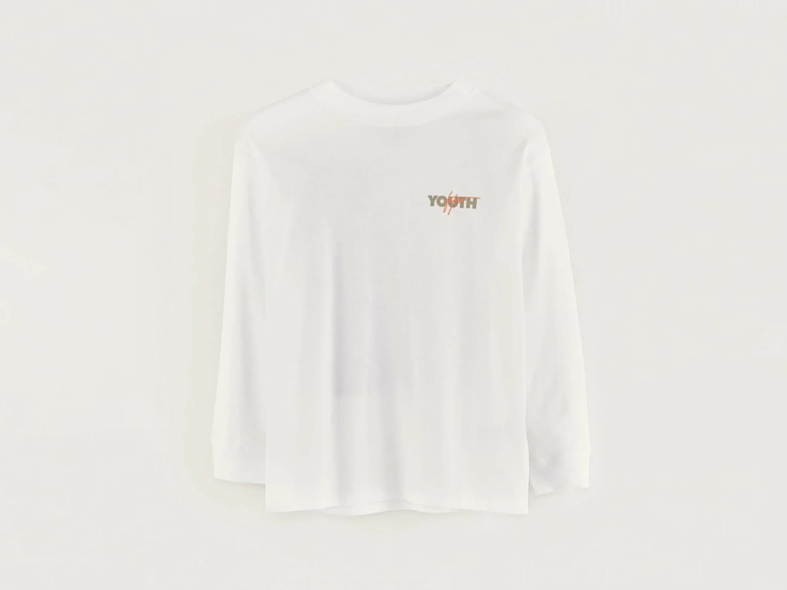 Comfortabel wit T-shirt van geborstelde katoenjersey met borduursel op de borst en een fotoprint op de rug.