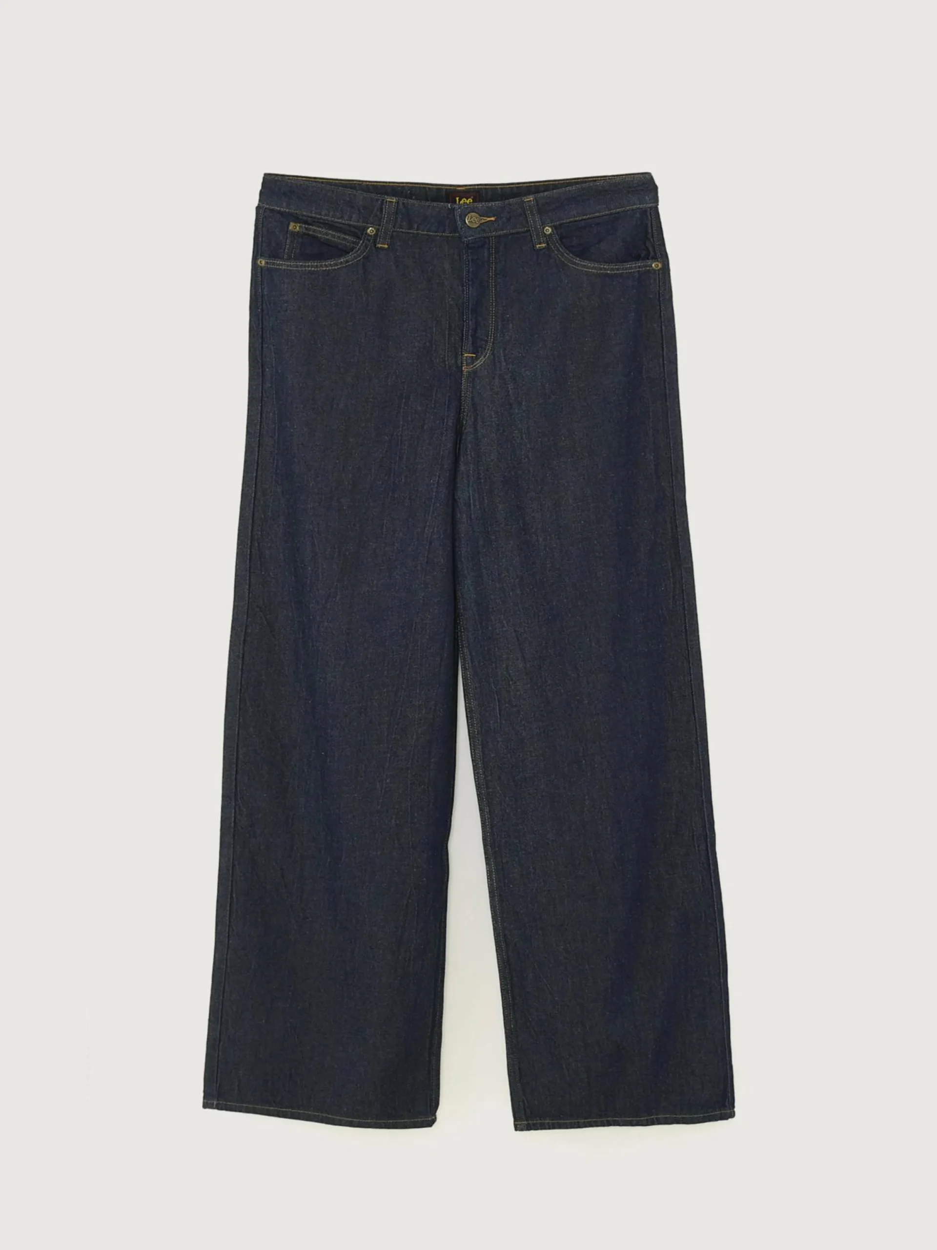 De Lee Stella A-Line jeans in Dark Beat van lichtgewicht, stevige denim heeft een hoge taille en palazzo broekspijpen.