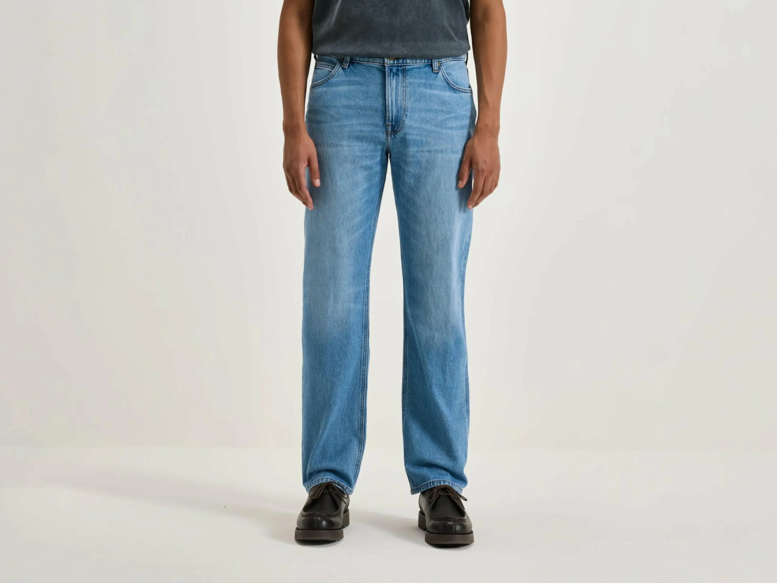 De Lee West heren jeans van biologisch katoen denim met relaxte pasvorm heeft een regular waist, ruime dijen en knieën en een vleugje stretch voor een actieve pasvorm.