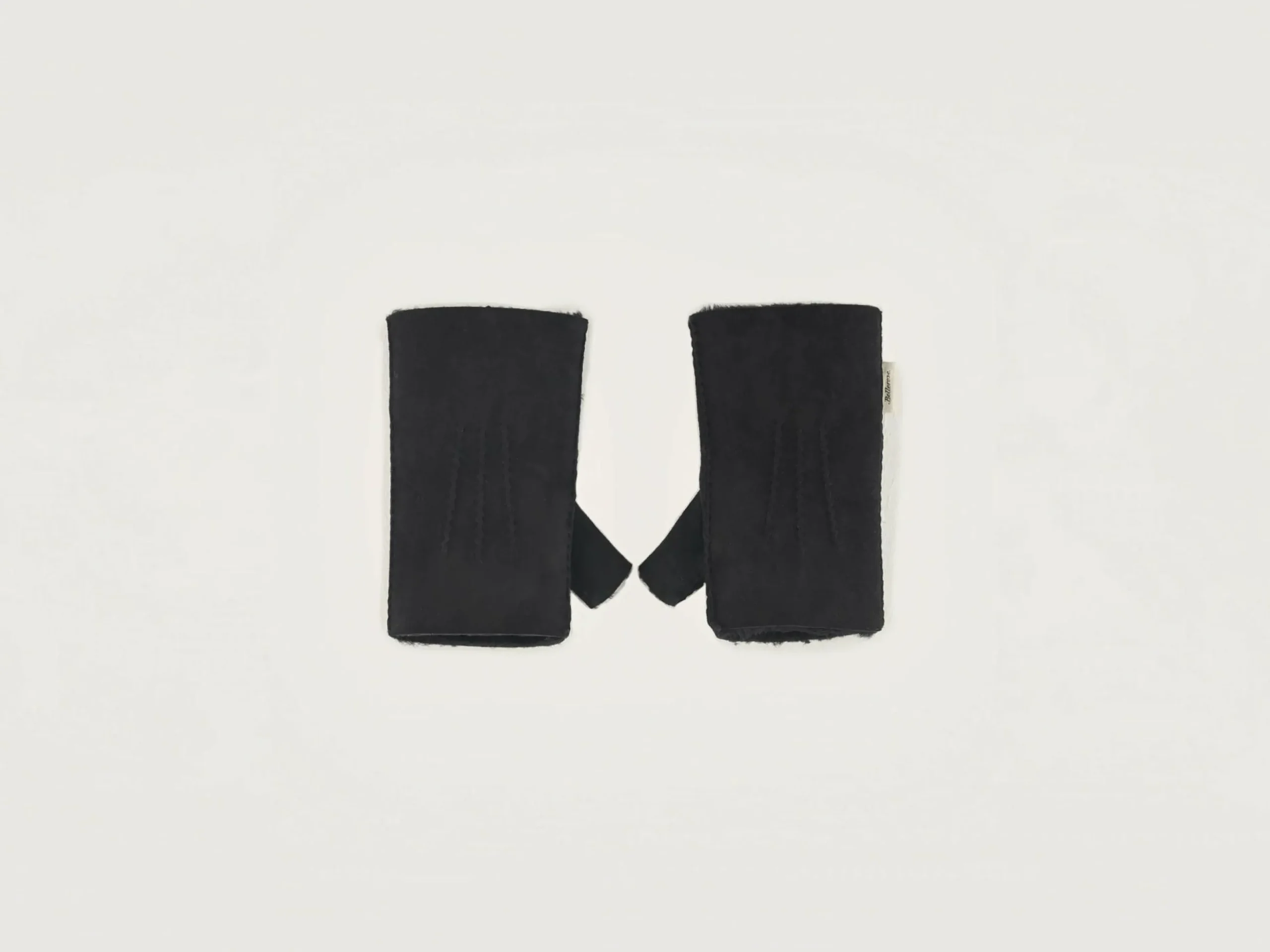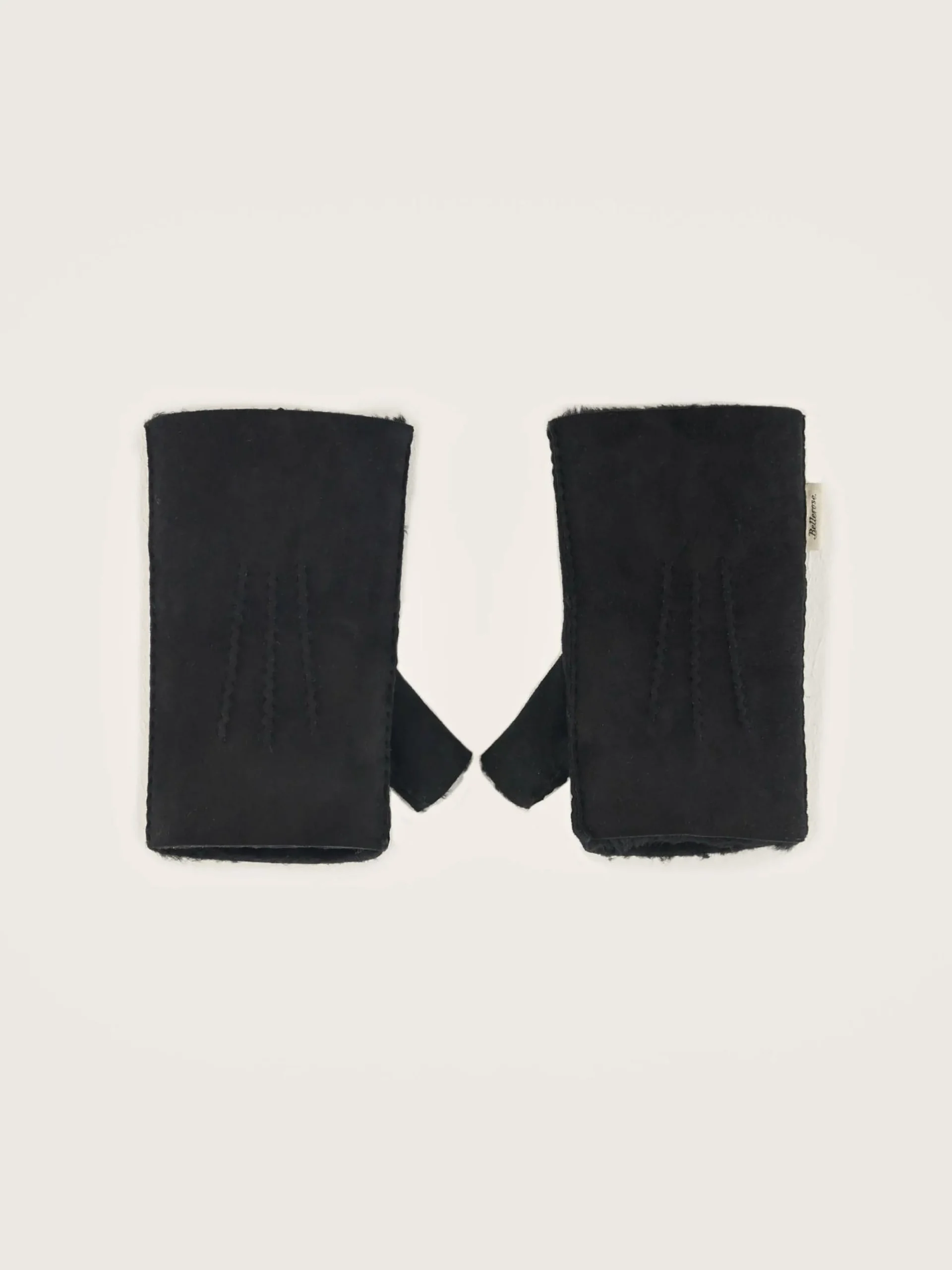 Handschoenen zonder vingers in zwart leer met shearlingwol.