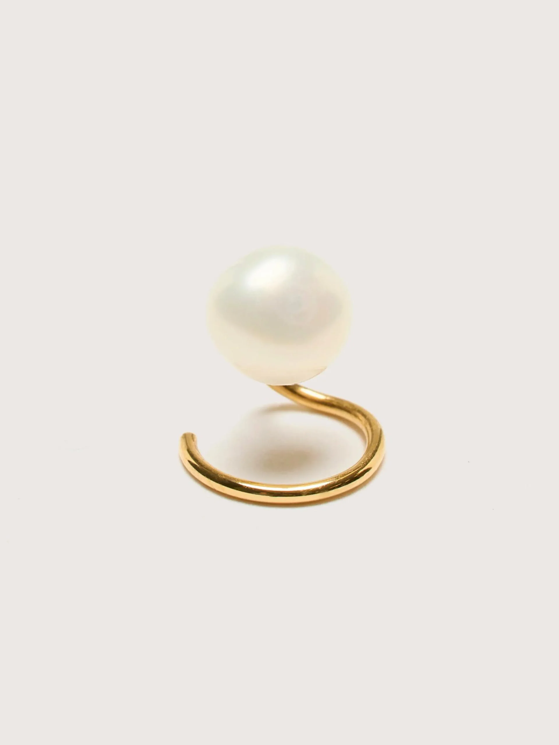 De Maria Black Baroque Twirl oorbel heeft een uniek 18k verguld gerecycled zilveren ontwerp met een zoetwaterparel.