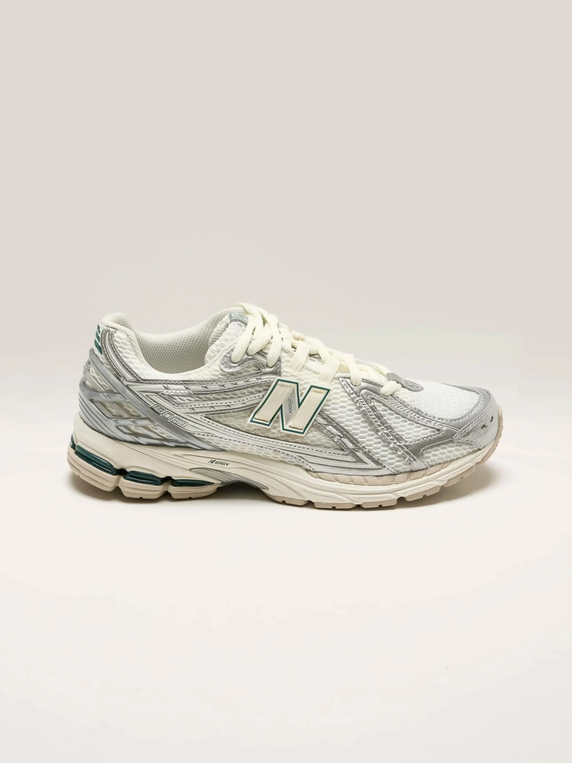 De New Balance 1906R hardloopschoenen hebben een bovenwerk van mesh met synthetische overlays en een dempende ABZORB middenzool en hiel.