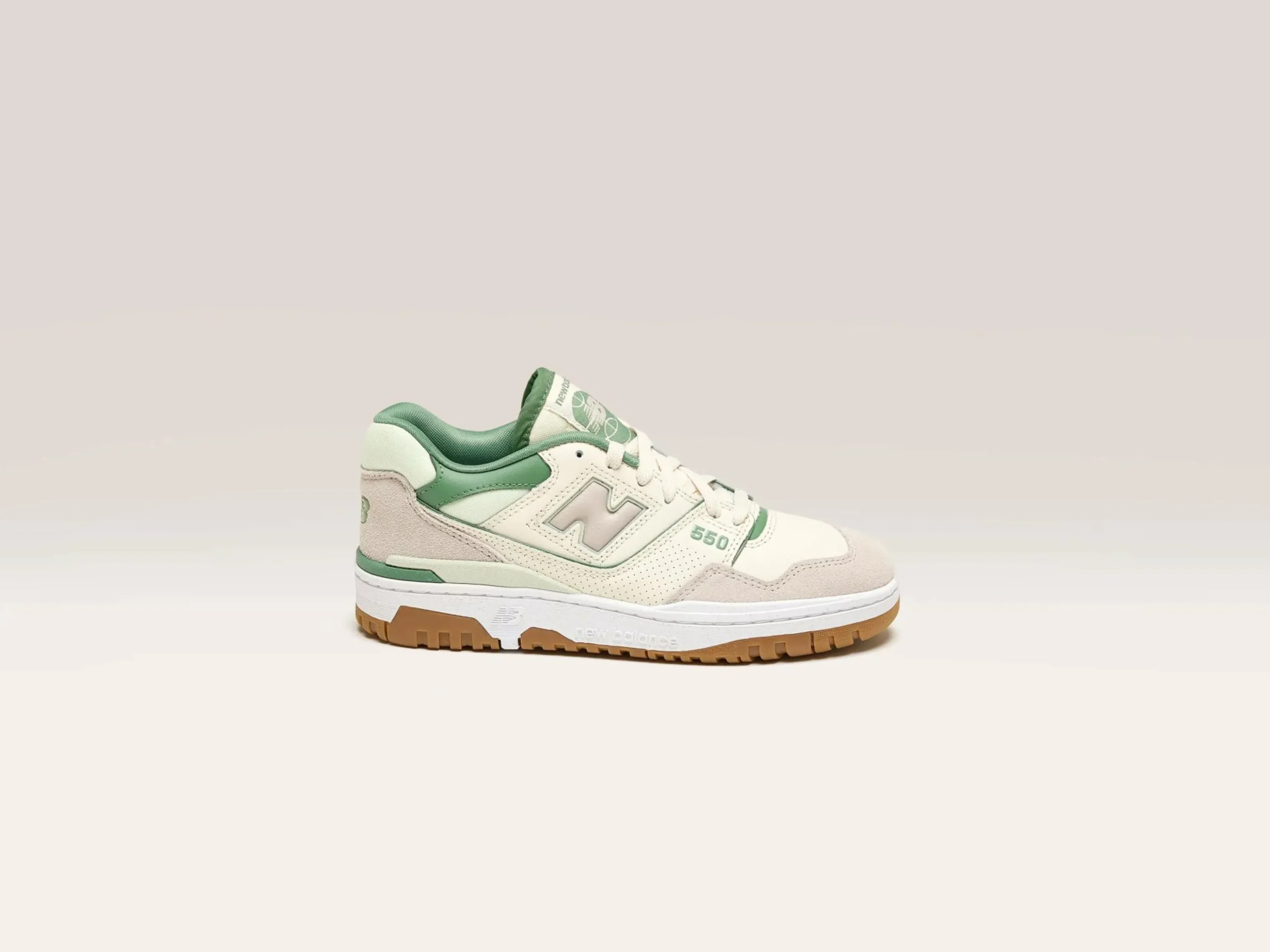 The New Balance BBW550 low-top lifestyle sneakers feature a dependable leather, synthetic suede, and mesh upper design.