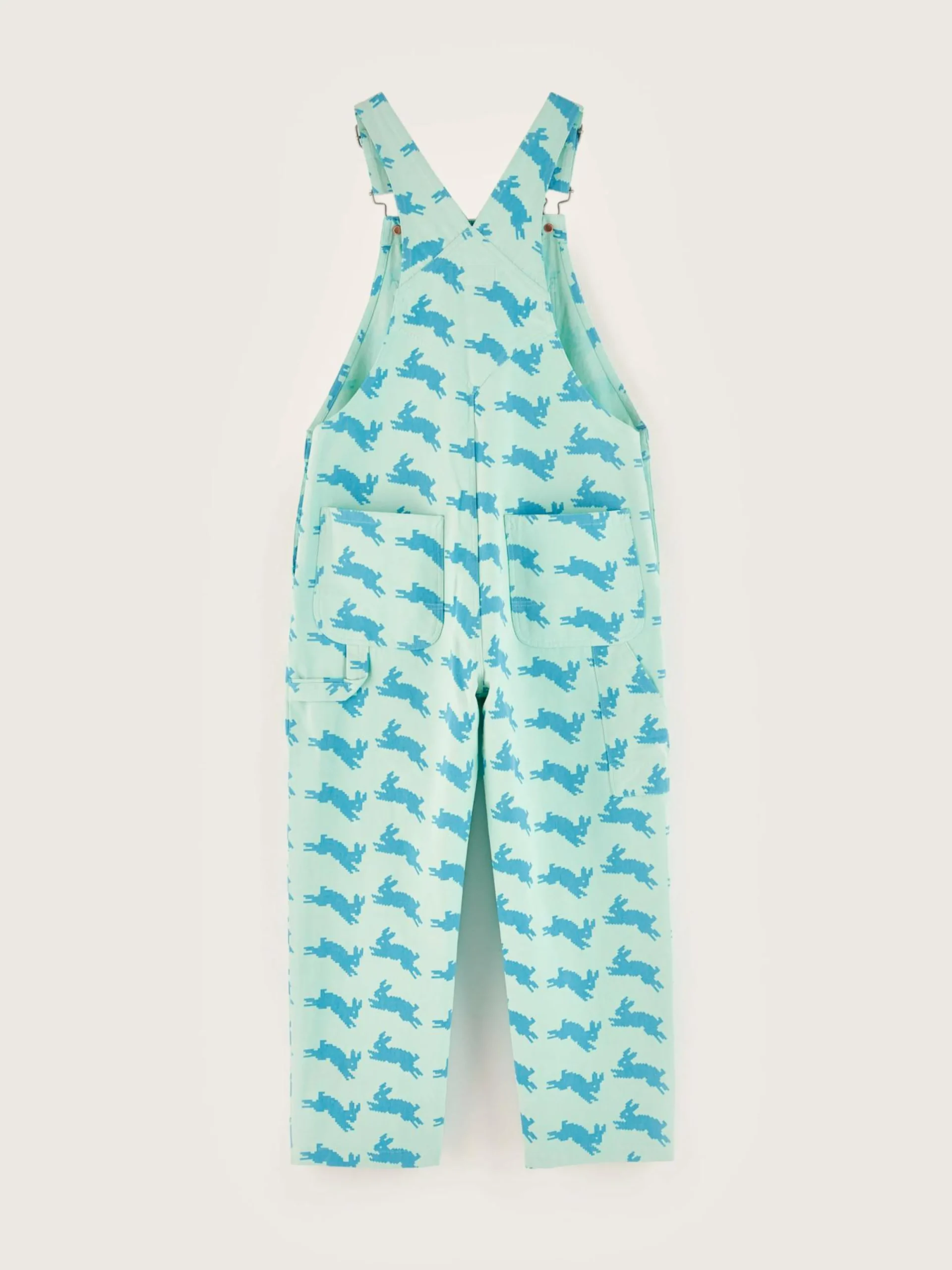 Comfortabele blauwe katoenen salopette, volledig bedrukt met konijnmotief en Bellerose x The Animal Observatory-signatuur.