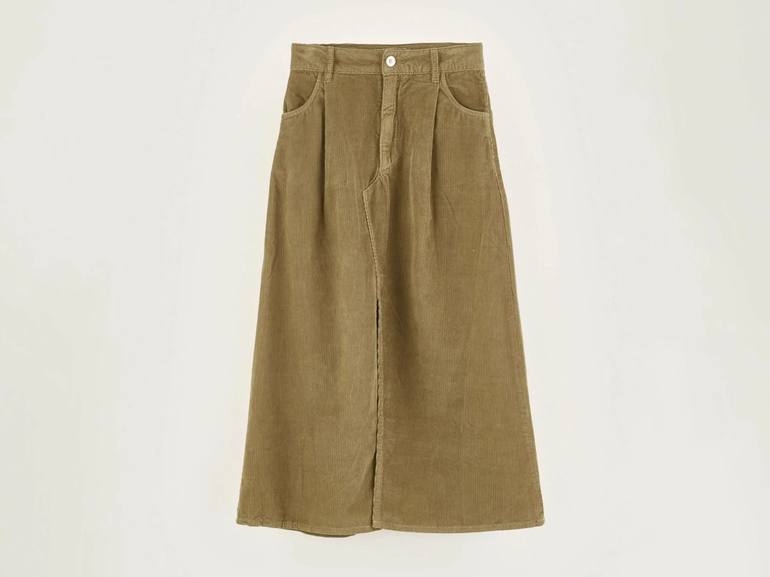 Lichtbruine midirok van vinylachtig textiel.