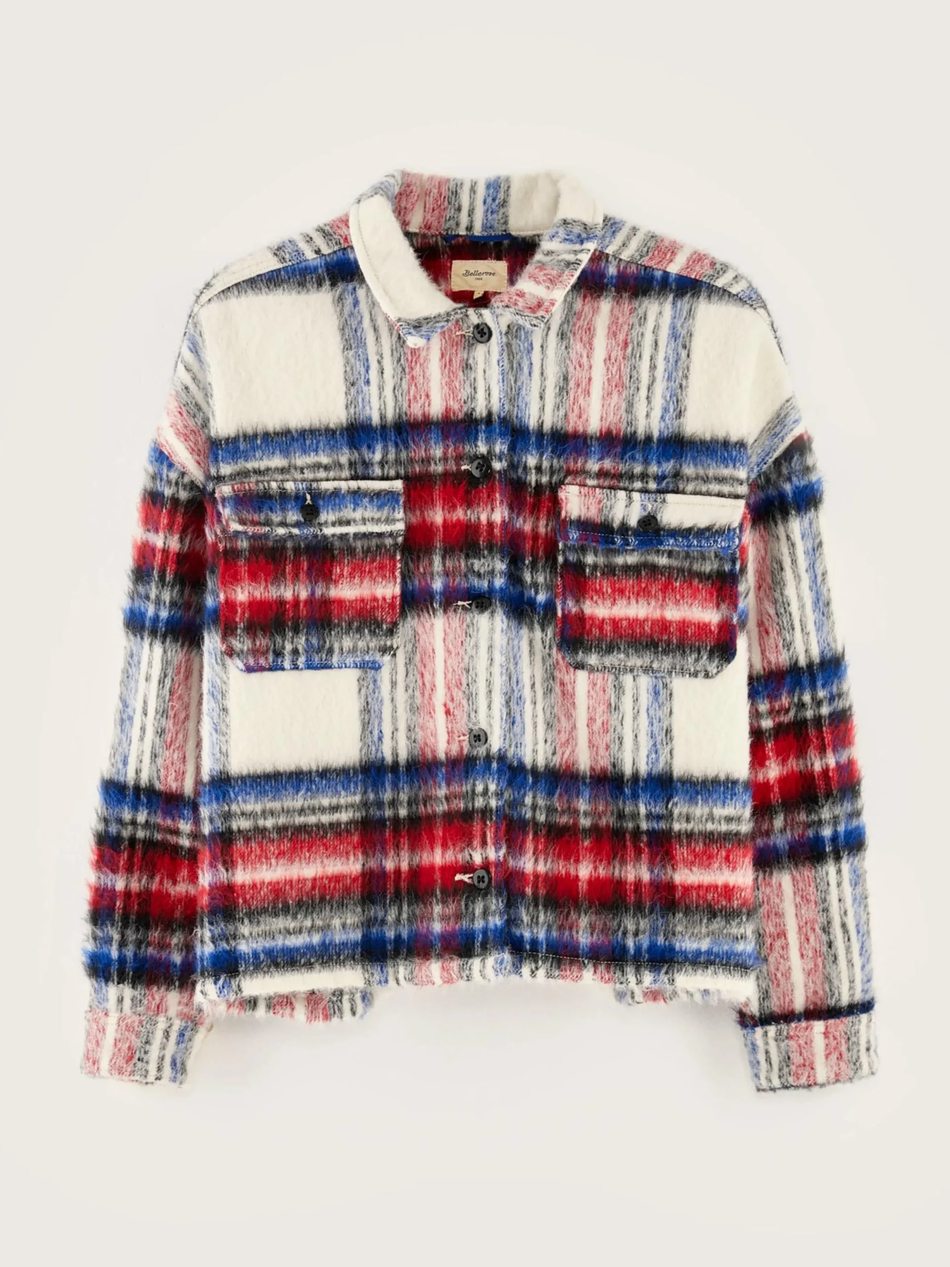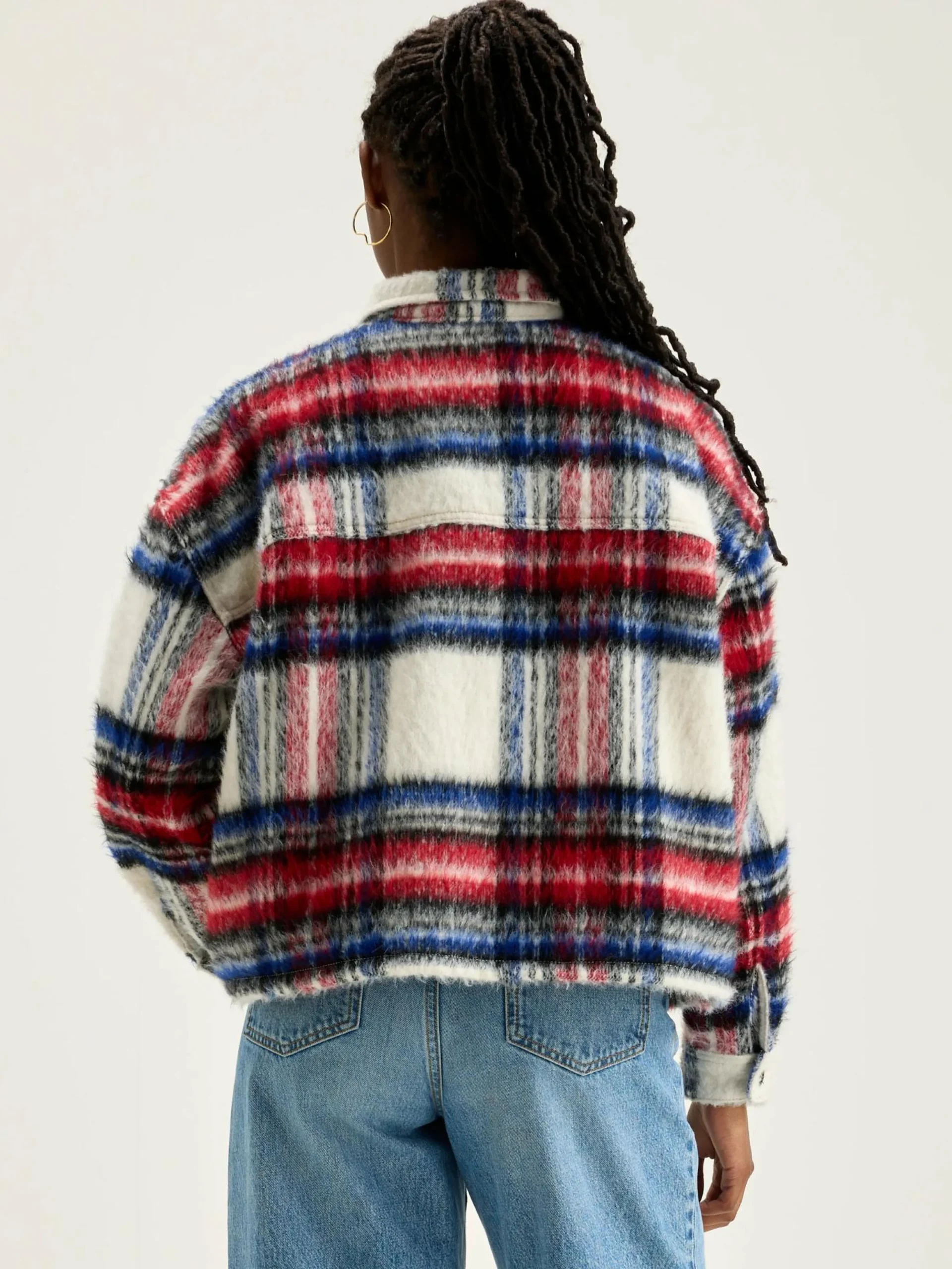Geruit oversized overhemd met opgestikte zakken, van geborstelde Italiaanse stof.