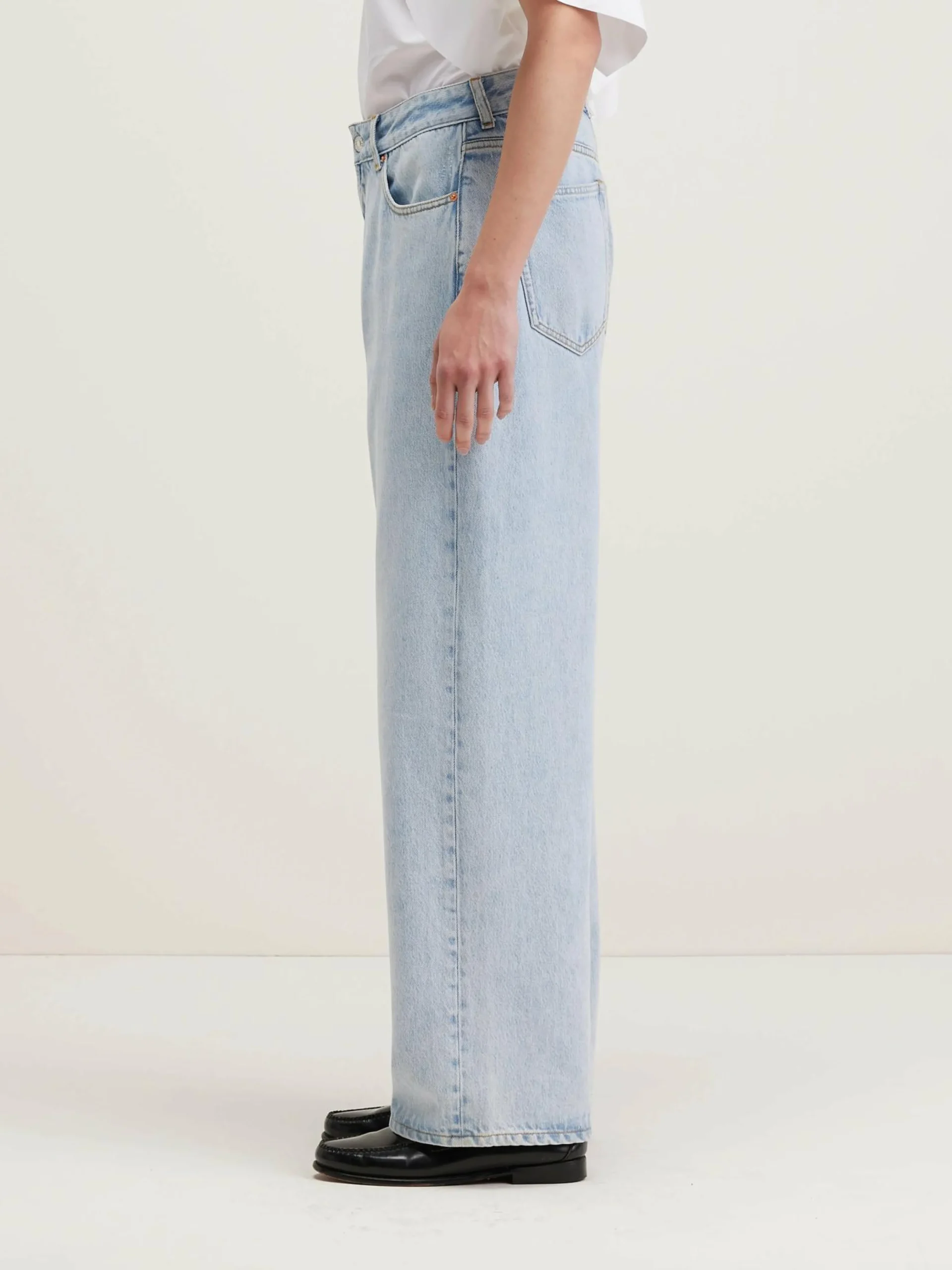 Mid-waist jeans met wijde pijpen in versleten lichtblauw denim.