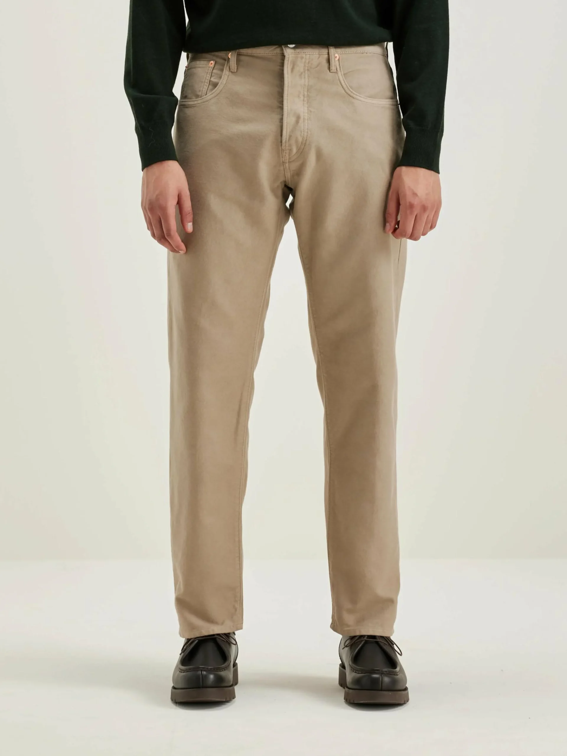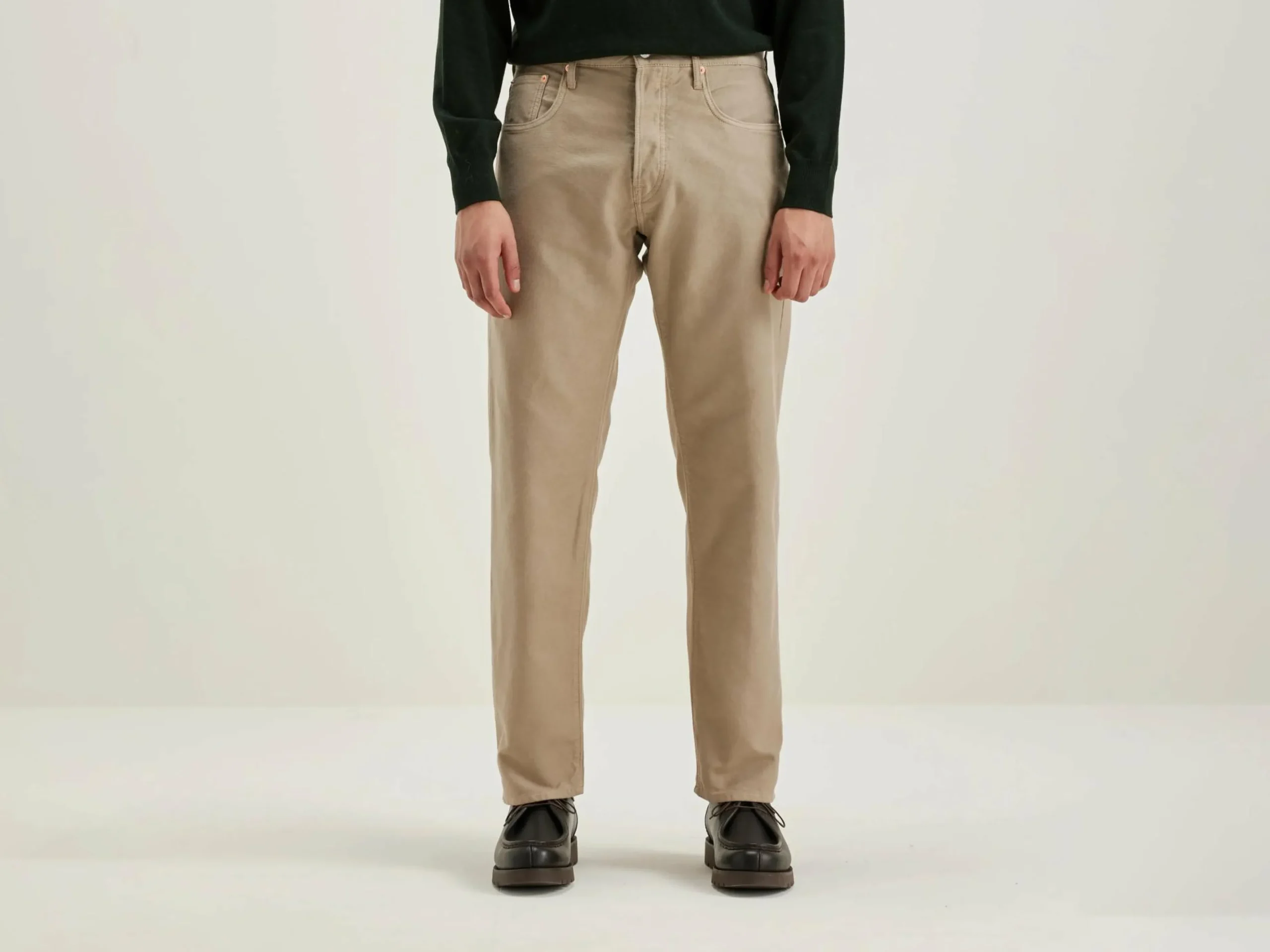 “Dad-style” broek met lage taille en rechte pijpen, in five-pocket uitvoering, van grijze katoen.