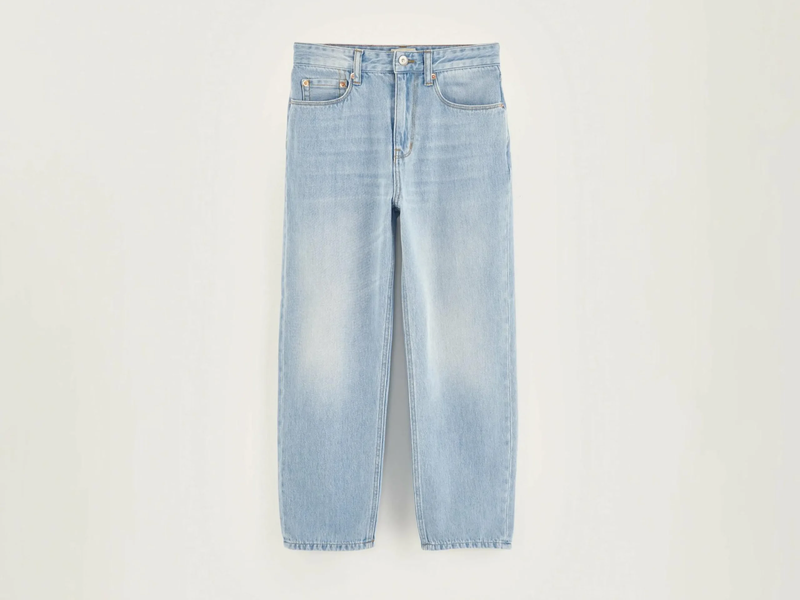 Relaxede jeans met normale taille en wijde pijpen, van licht gerafeld katoendenim.