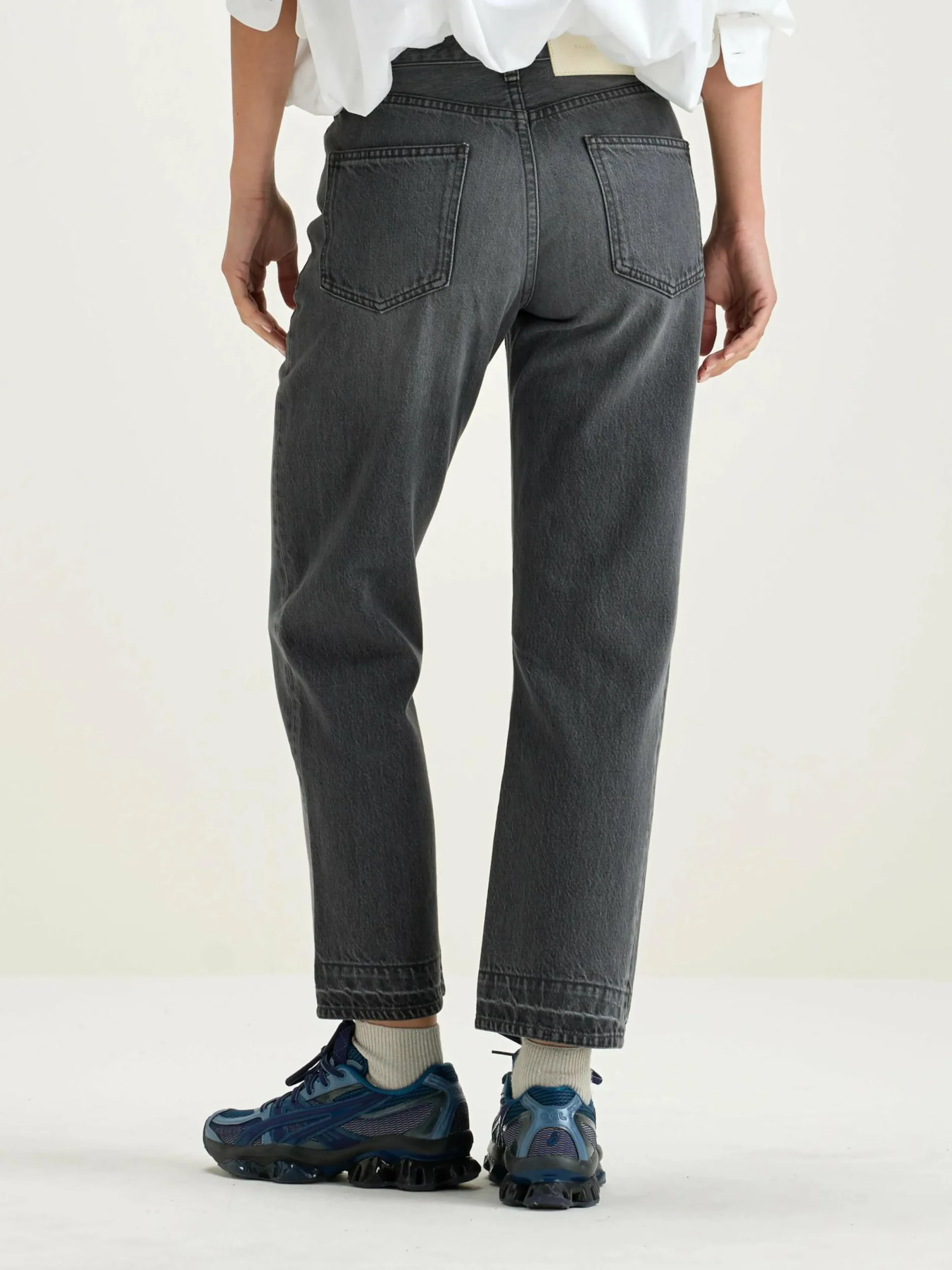 - Hoge taille, rechte cropped pijpen