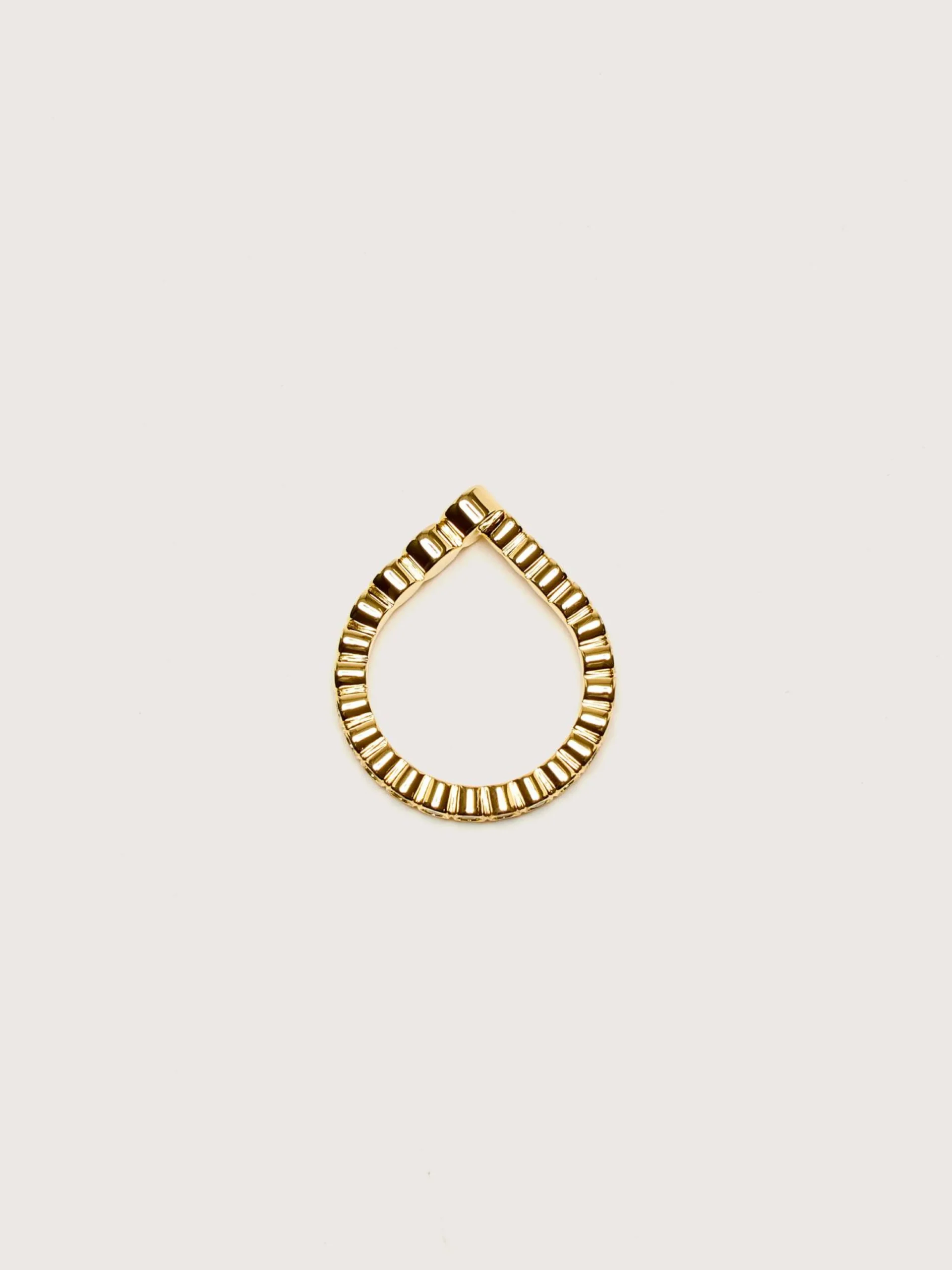 De RAGBAG Odette ring is bezet met witte zirconia stenen die van klein naar groot lopen rond de 18k goudgeplateerde band.