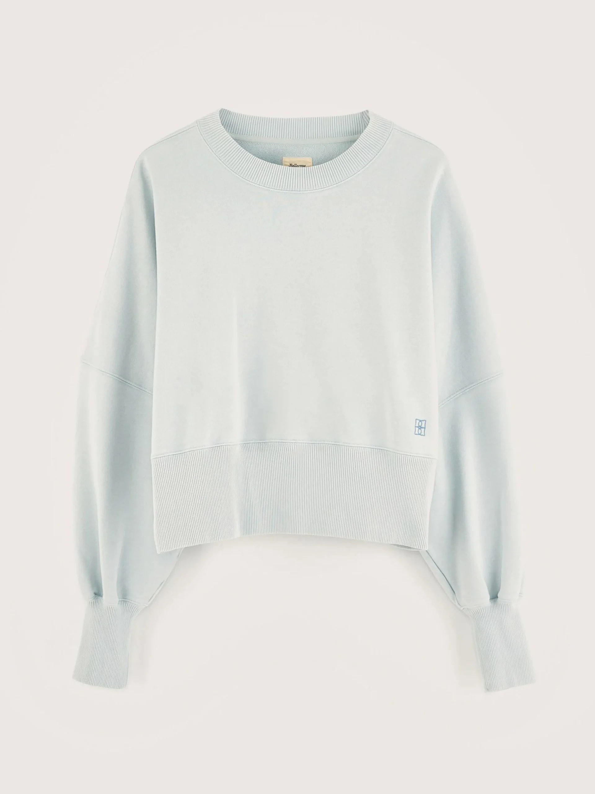 Oversized, cropped lichtblauw sweatshirt van biologische katoenfleece.