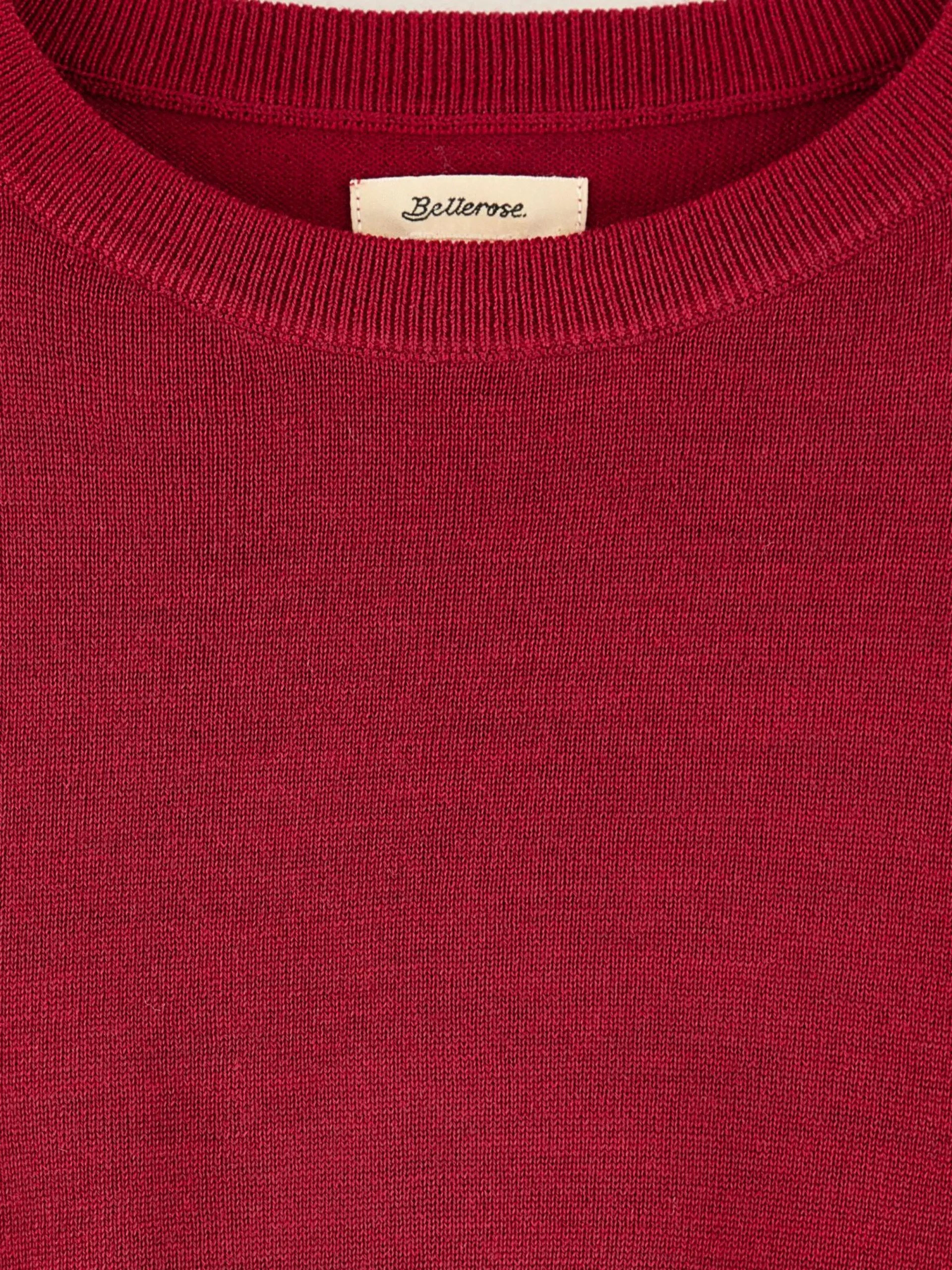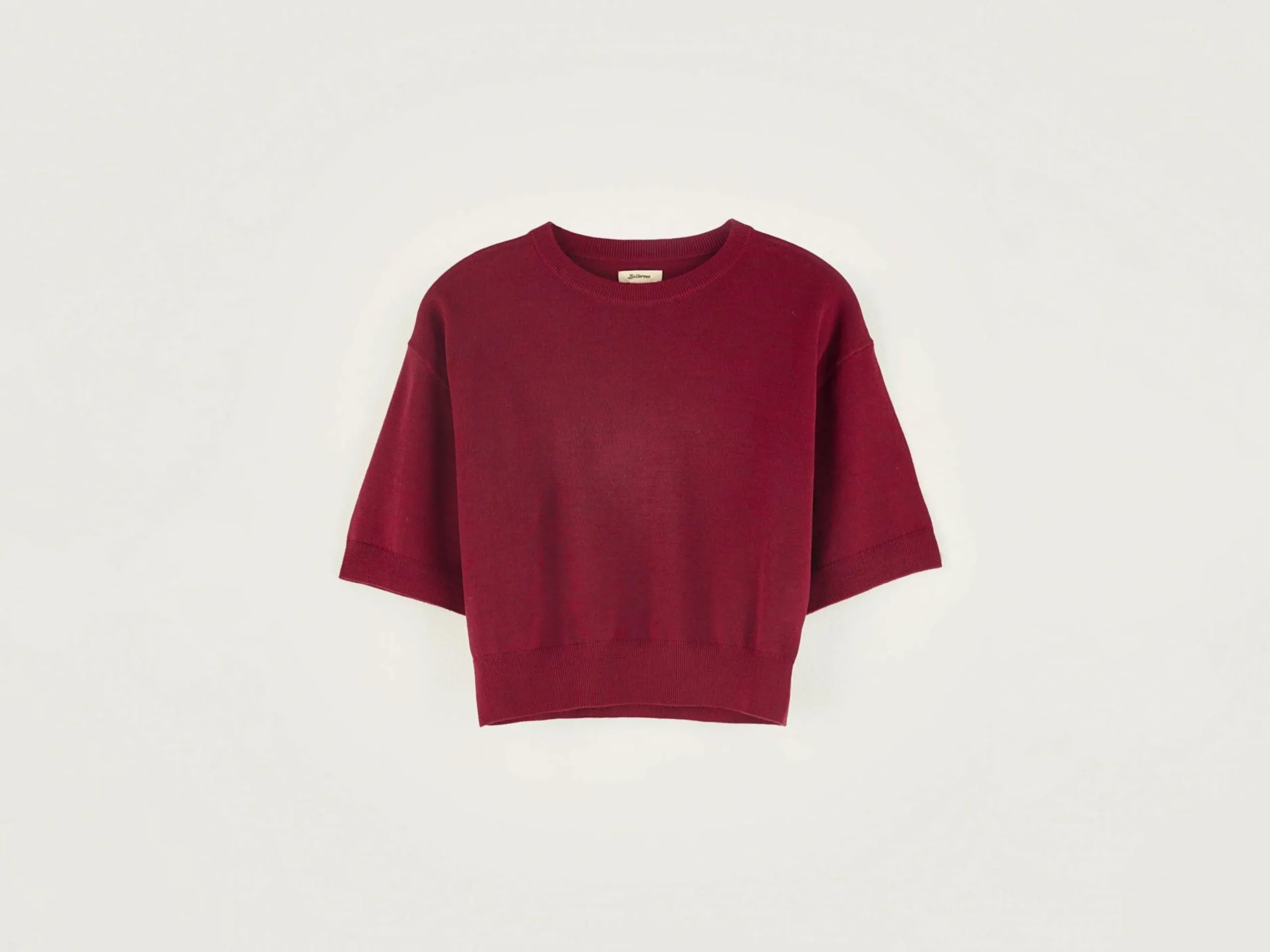 Wijnrode, cropped trui met korte mouwen, van merinowol.