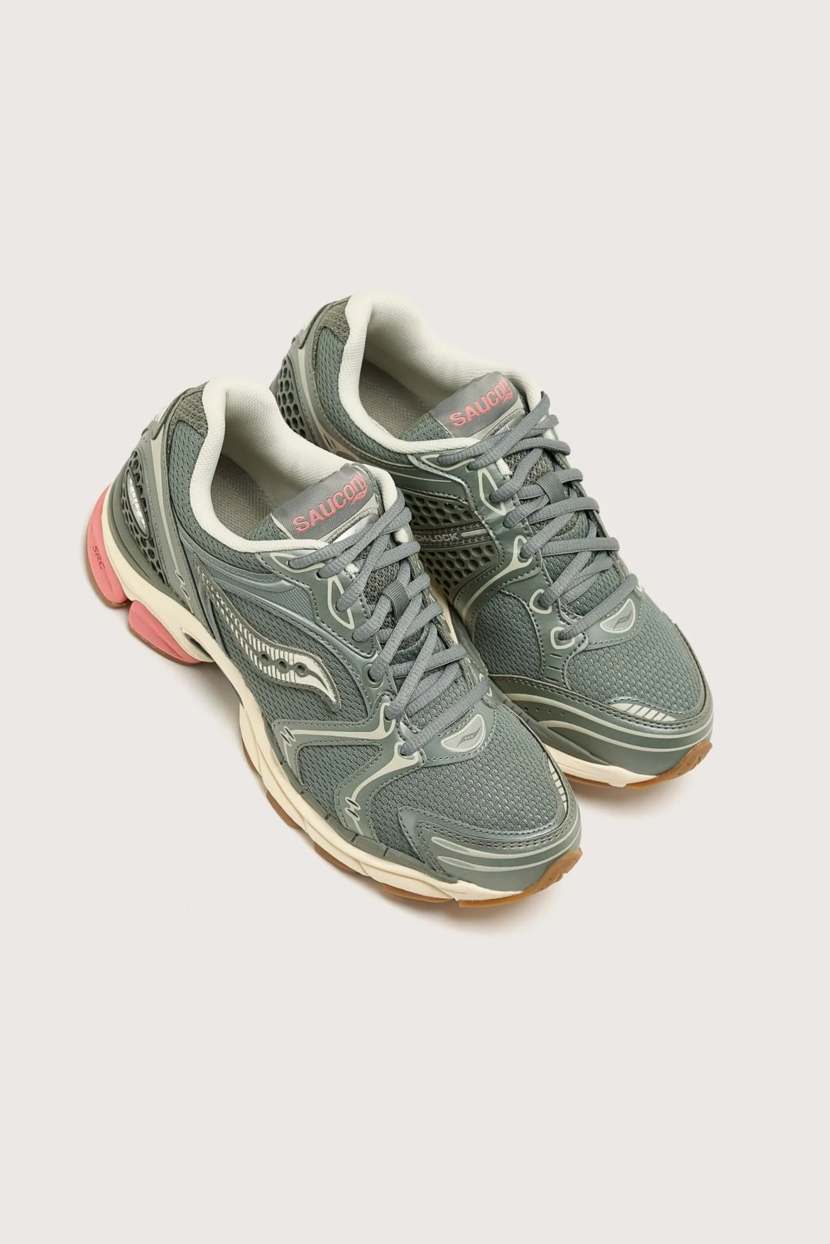 The Saucony ProGrid Triumph 4 sneaker features a closed mesh and chrome leather upper with arch-lock and ProGrid technologies for comfort.