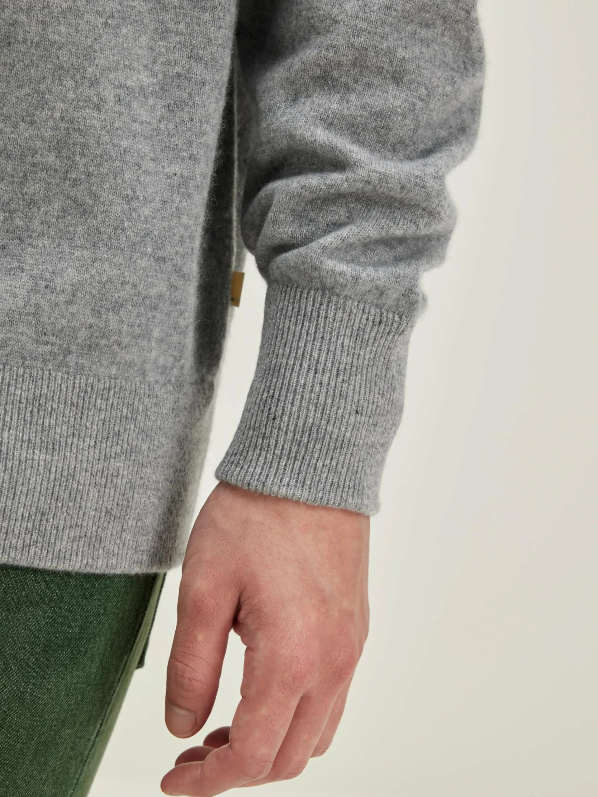 Comfortabele sweater met ronde hals, van heidegrijs kasjmier.