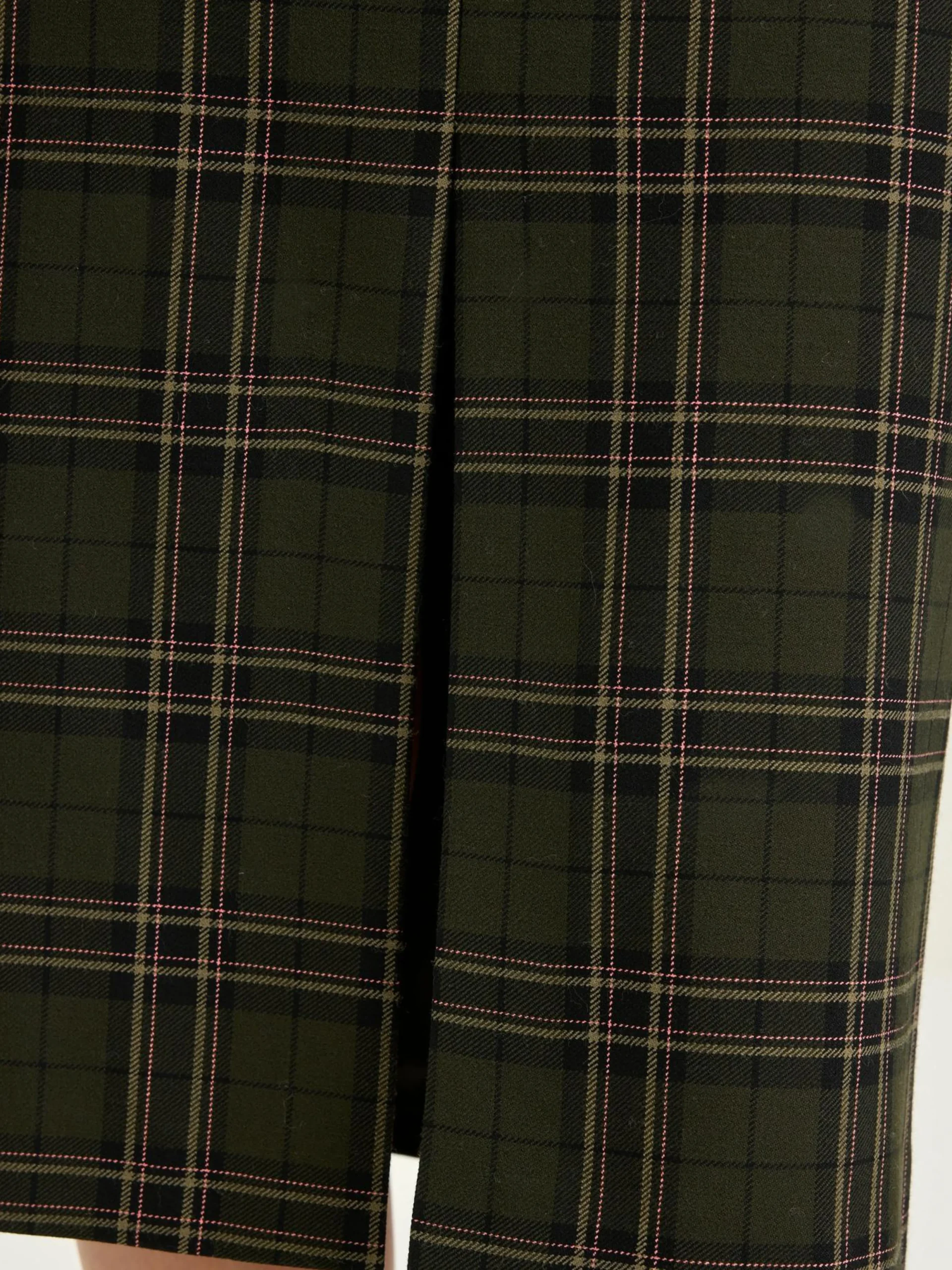 Geruite high-waist kokerrok met voorsplit en discrete zakken.