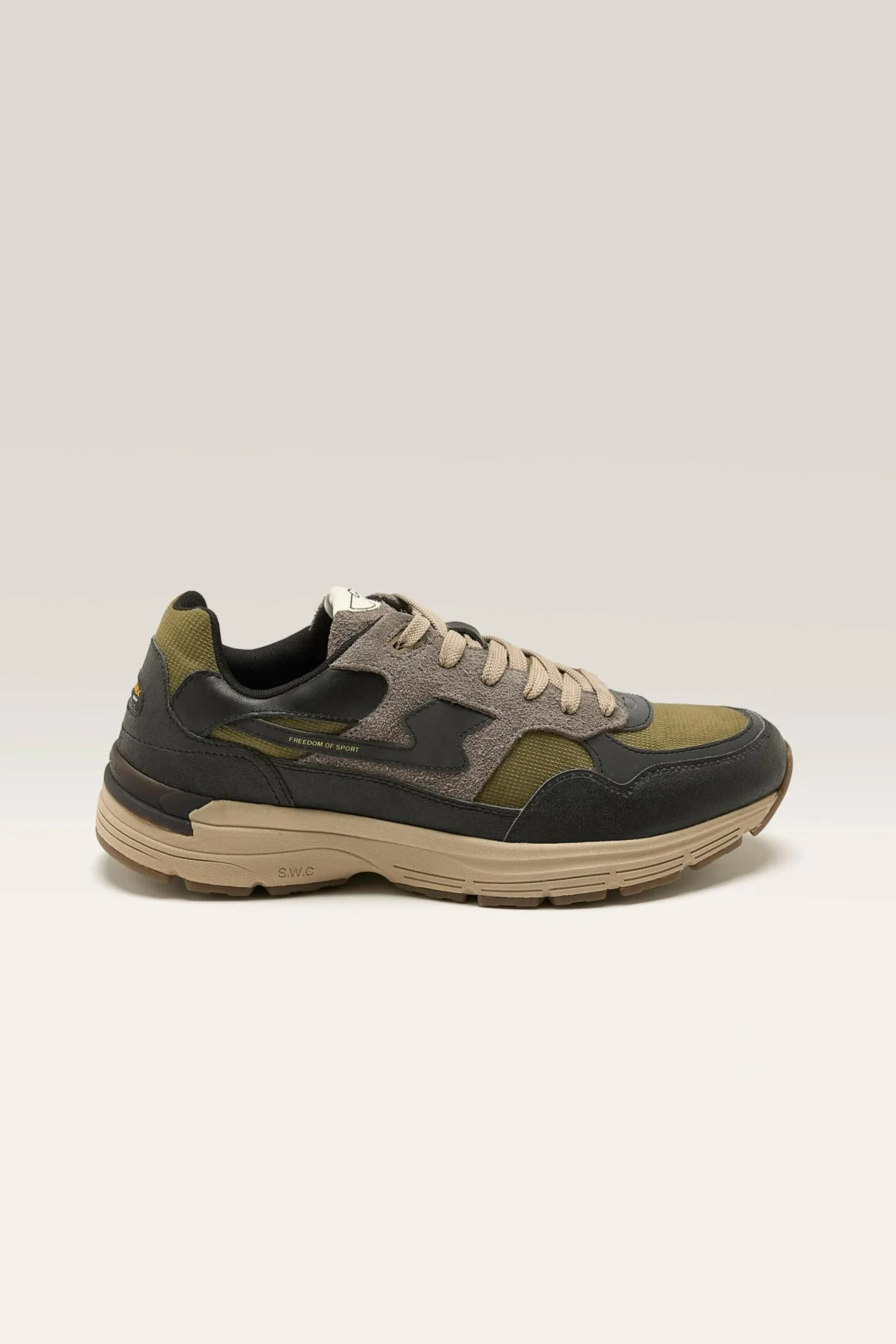 The Stepney Workers Club Amiel S-Strick Geo-Merged water-proof sneaker features a lightweight running silhouette.